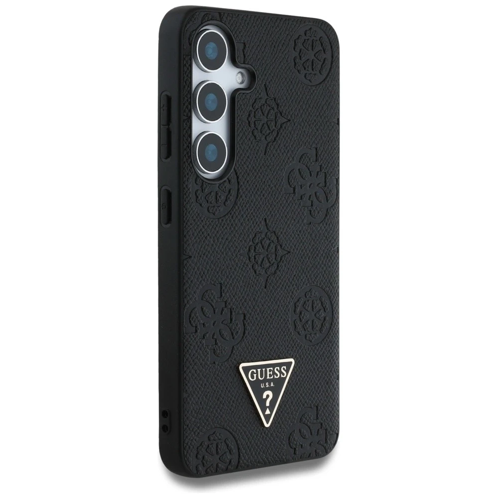 Etui pokryte zostało wysokiej jakości skórą ekologiczną, ozdobioną charakterystycznym tłoczonym wzorem 4G i subtelnym motywem kwiatowym Peony, który dodaje mu unikalnego uroku. W dolnej części znajduje się metalowe logo Guess w formie trójkąta – symbol luksusu i perfekcji w każdym detalu.