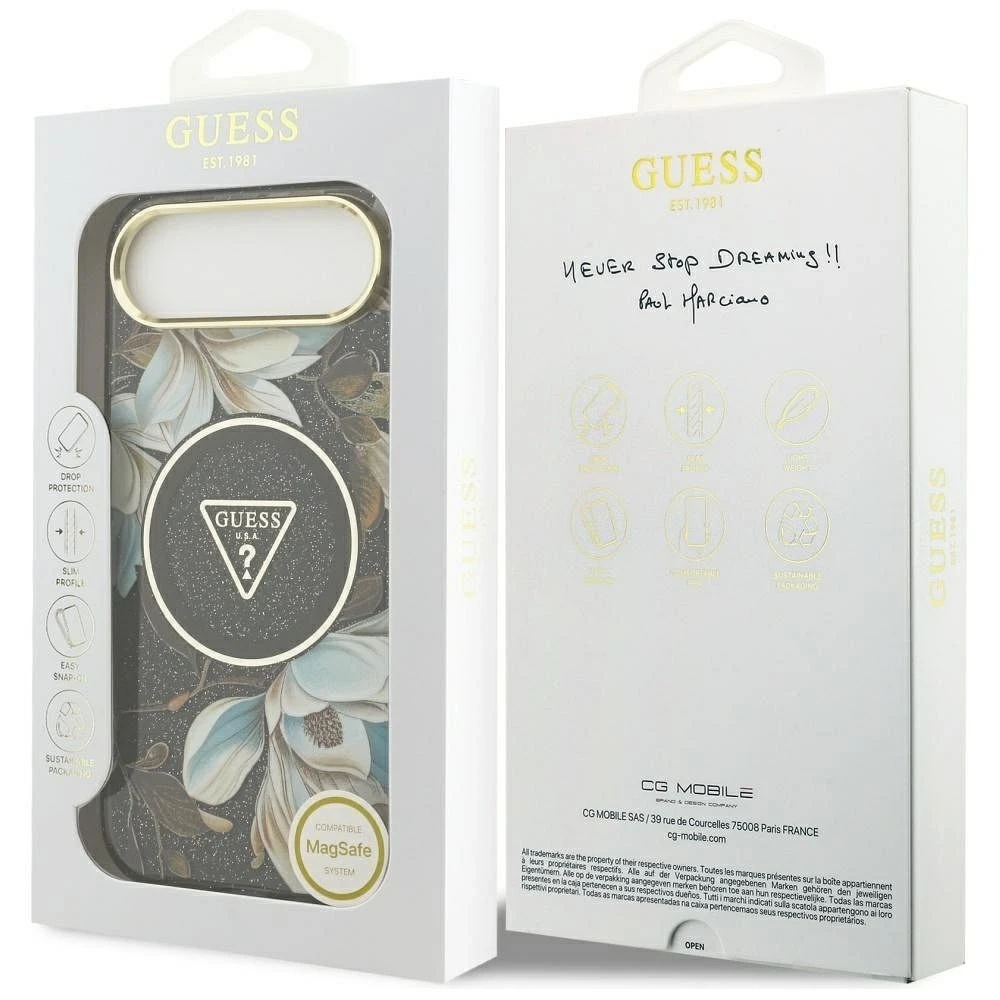 Etui Guess MagSafe do iPhone 17 Air IML Glitter Flowers Triangle Black x 1