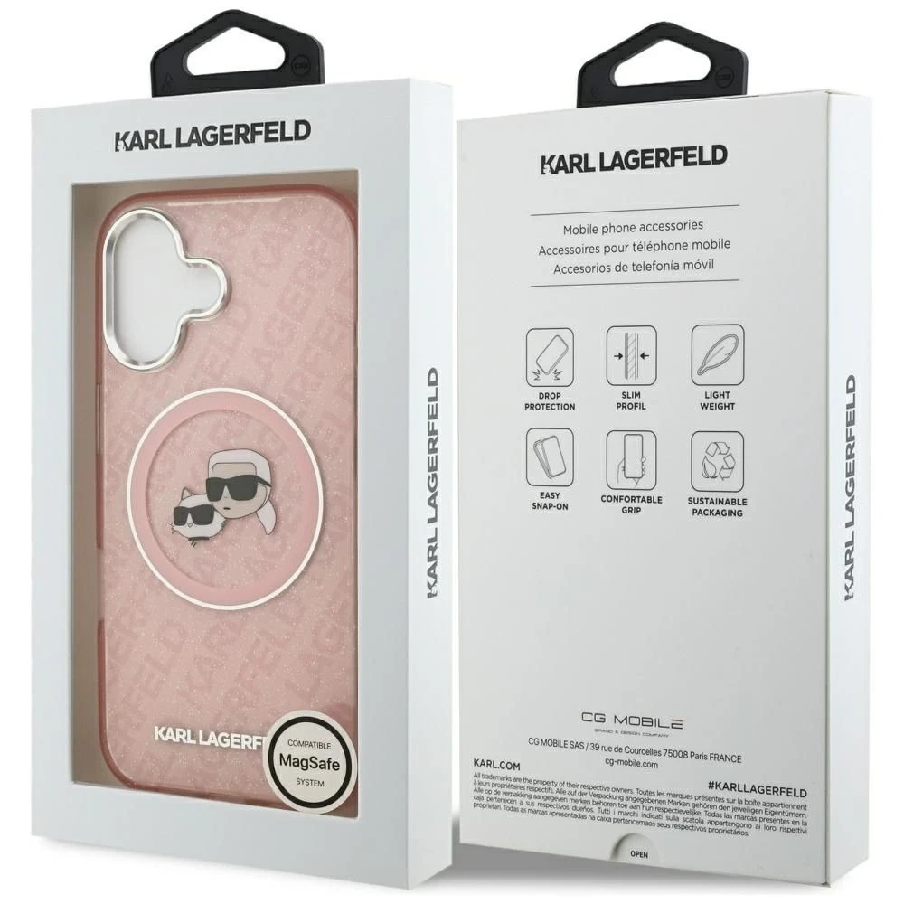 Etui Ochronne do iPhone 17 Karl Lagerfeld IML Glitter K&C Heads MagSafe Różowy x 1
