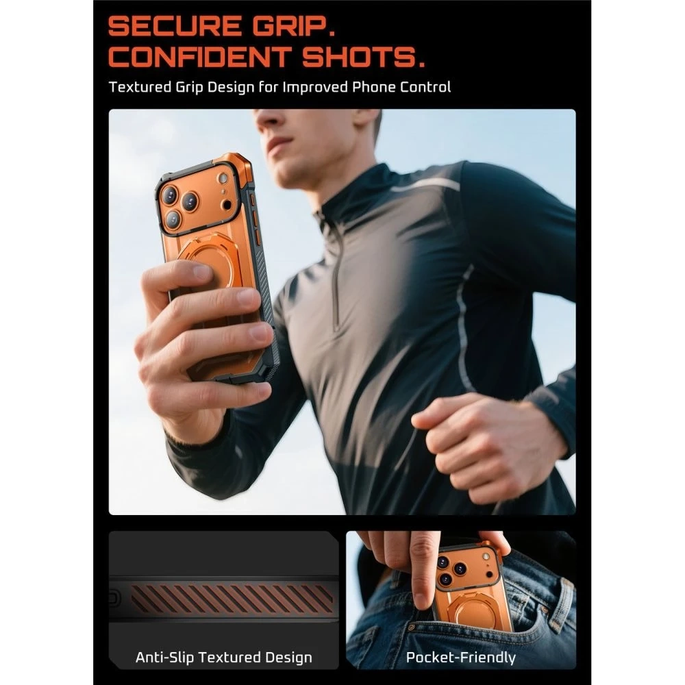 • Supcase UB Grip MagSafe do iPhone 17 Pro to pancerne etui o militarnym designie. Wzmocnione narożniki, funkcja podstawki i pierścień MagSafe zapewniają ochronę 360°, wygodę użytkowania i szybkie ładowanie bezprzewodowe.