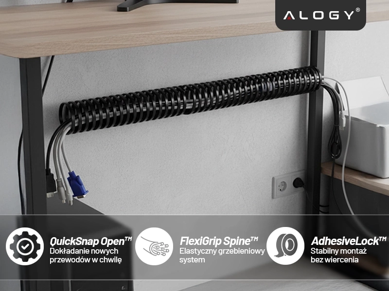 ⭐ Das neueste Modell ⭐ FlexiGrip Spine™ – flexibler, kammförmiger Kabelhalter ⭐ QuickSnap Open™ – schnelles Einführen des Kabels ⭐ AdhesiveLock™ – starkes Montageband ⭐ 50 cm lang ⭐ 4 cm breit ⭐ Bohrfreie Organisation ⭐ Biegefestigkeit ⭐ Ästhetisches Kabelmanagement ⭐ 10 Jahre Branchenerfahrung ⭐ über 50.000 zufriedene Alogy-Kunden ⭐