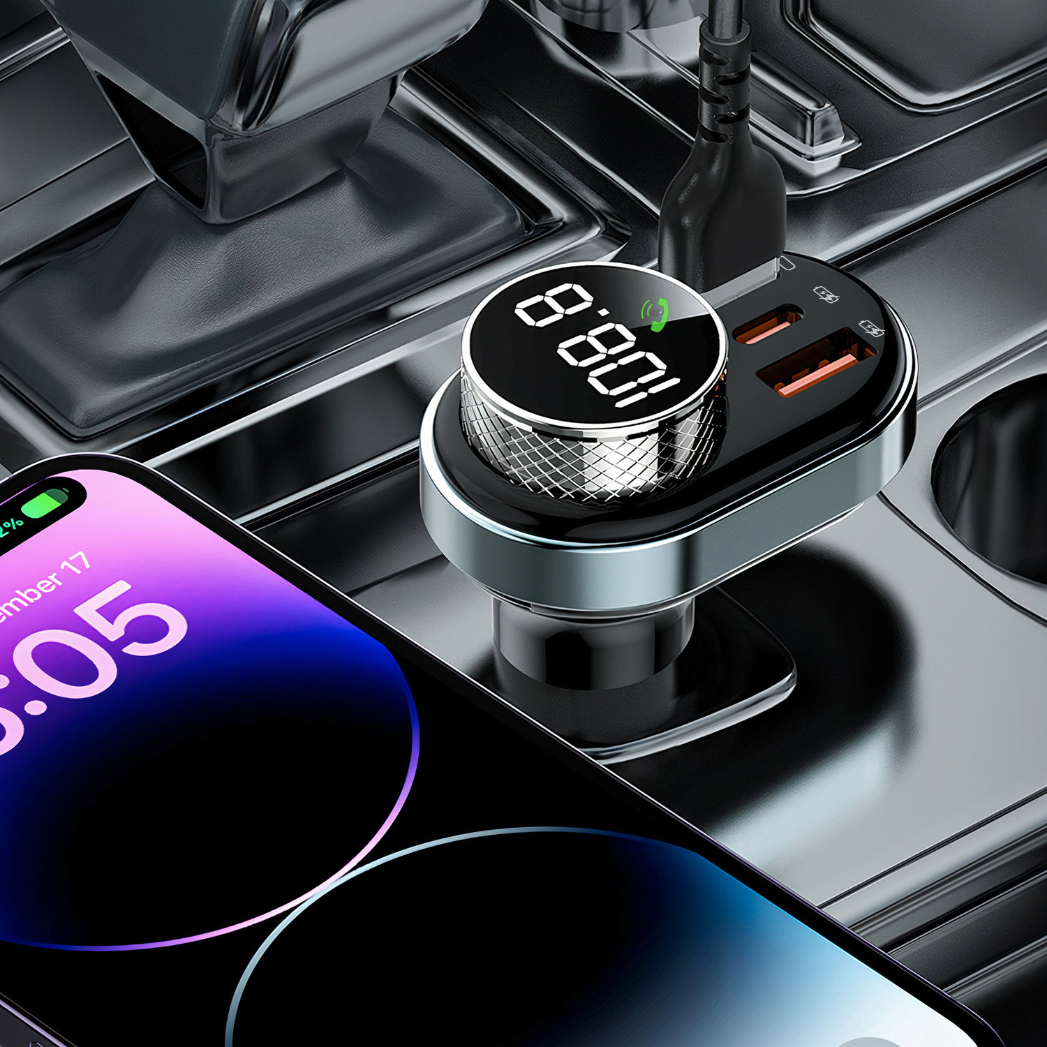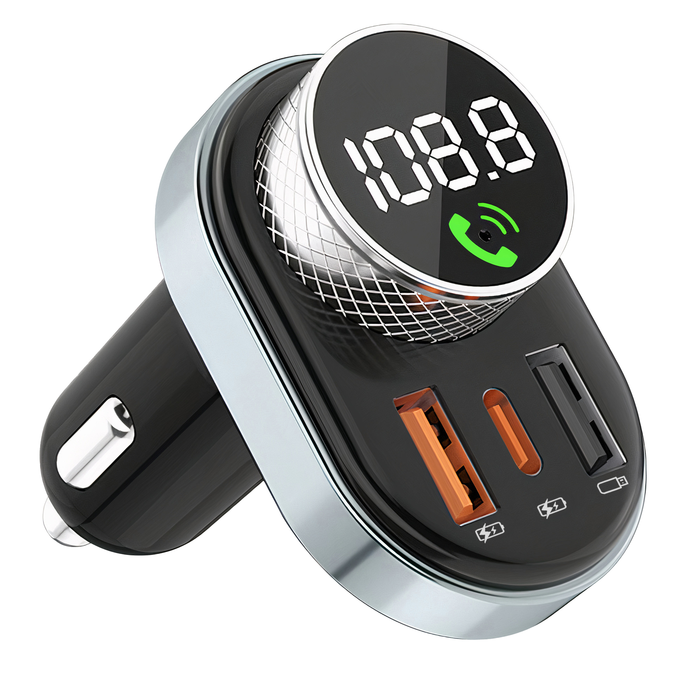 FM-Transmitter, Autoladegerät, Bluetooth 5.0, USB QC 3.0, USB-C PD, 30 W, MP3, TF-Karte, BC74, Schwarz x 1