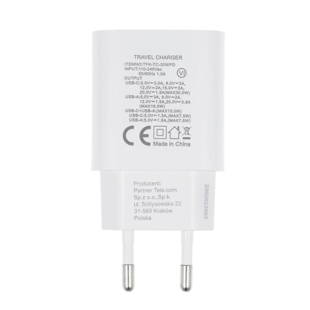 FORCELL F-ENERGY Wandladegerät Typ C USB A PD QC4.0 3A 30W Weiß x 1