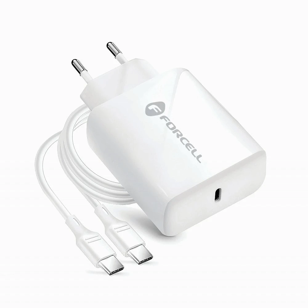 Forcell Schnellladegerät 25W PD QC 4.0 USB-C USB C auf USB C Kabel Weiß x 1