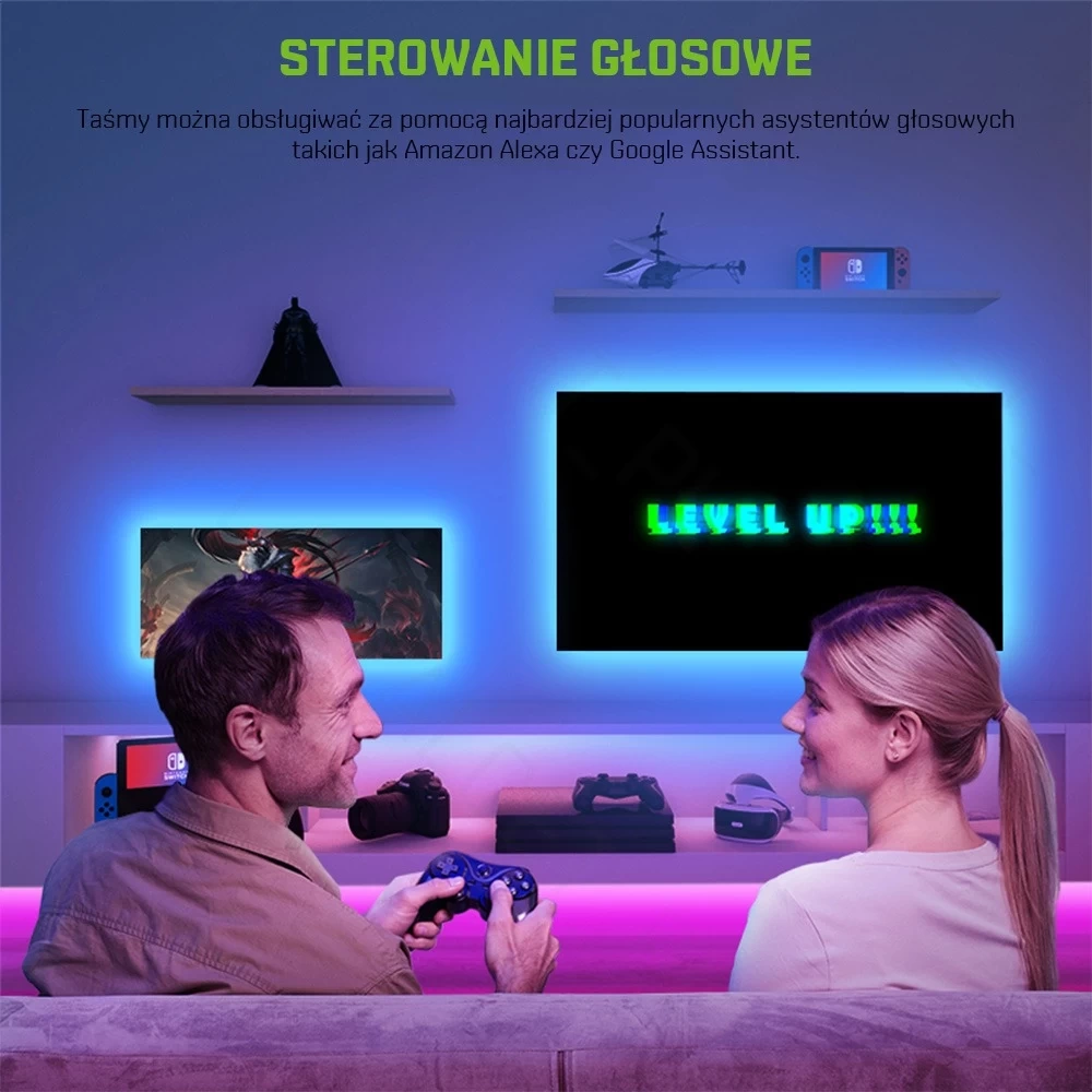 Das GOSUND SL3 Smart Tape ist eine innovative Lösung, die sich perfekt für Ihr Zuhause eignet. So können Sie eine stimmungsvolle Beleuchtung schaffen, die den Raum Ihrer Stimmung anpasst. Nachdem Sie es an die Stromversorgung angeschlossen und konfiguriert haben, können Sie es von Ihrem Telefon aus steuern, wo immer Sie sind, solange Sie über einen Internetzugang verfügen. Die Kassette verfügt außerdem über ein eingebautes Mikrofon, das nach dem Einschalten des entsprechenden Modus das Licht im Rhythmus der Musik ändert. Der RGB-Streifen wird über ein externes Netzteil mit Strom versorgt und funktioniert mit Smart Life-, Gosund-, Tuya-App-, IFTTT-, Amazon Alexa- und Google Home-Systemen. Das Set enthält zwei 5-m-Bänder.