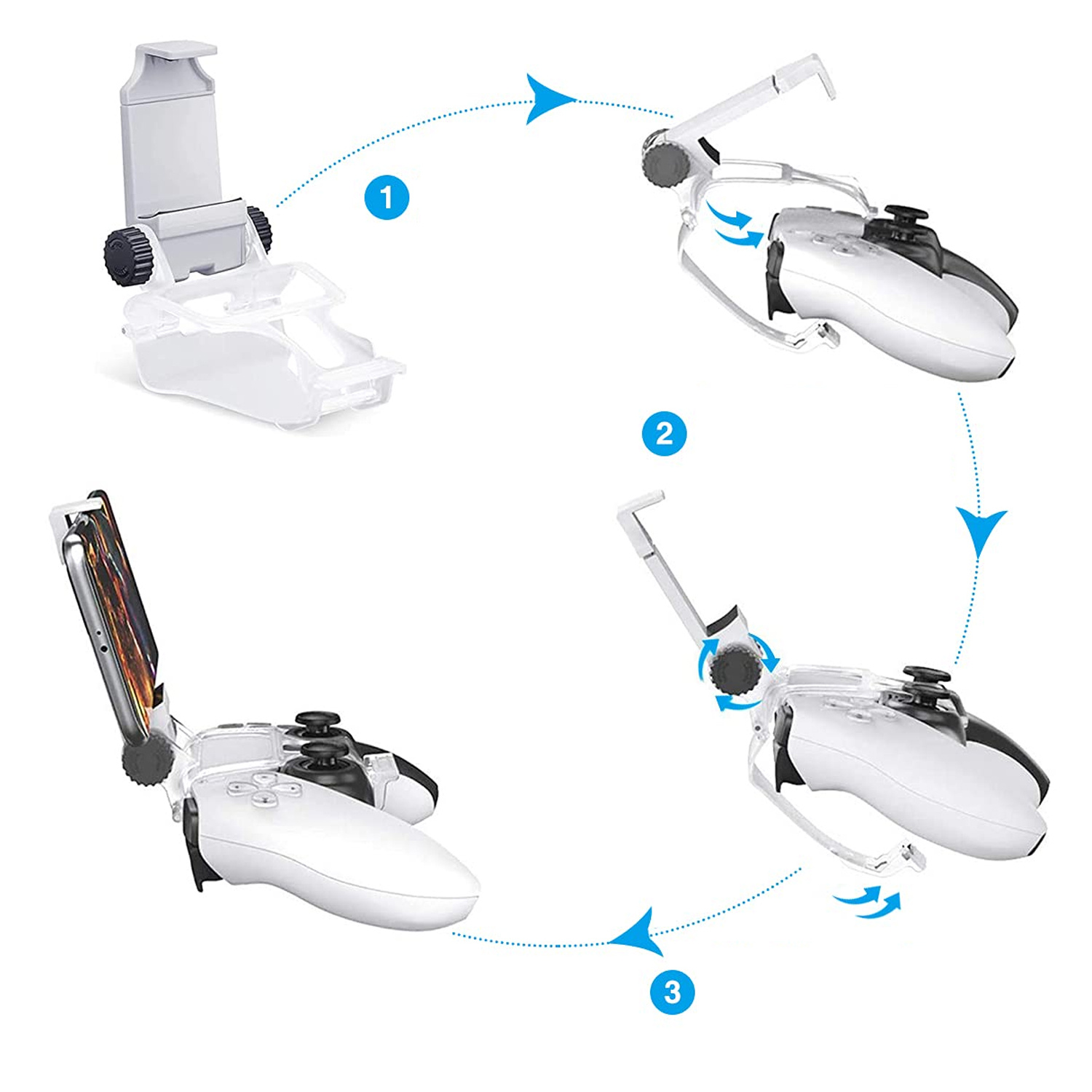 Der Dualsense PS5 Pad-Halter ermöglicht uns viele Anpassungen, sowohl den Betrachtungswinkel als auch die Verlängerung des Telefonhalters.