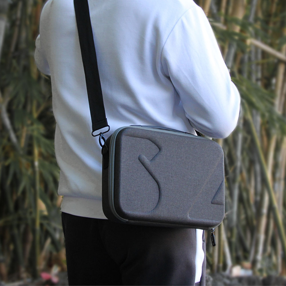 Die Tasche hat eine elastische Innentasche und eine Reißverschlusstasche, in der Sie weiteres Zubehör wie Kabel, Abdeckungen, Batterien, Filter oder Montagezubehör aufbewahren können.
