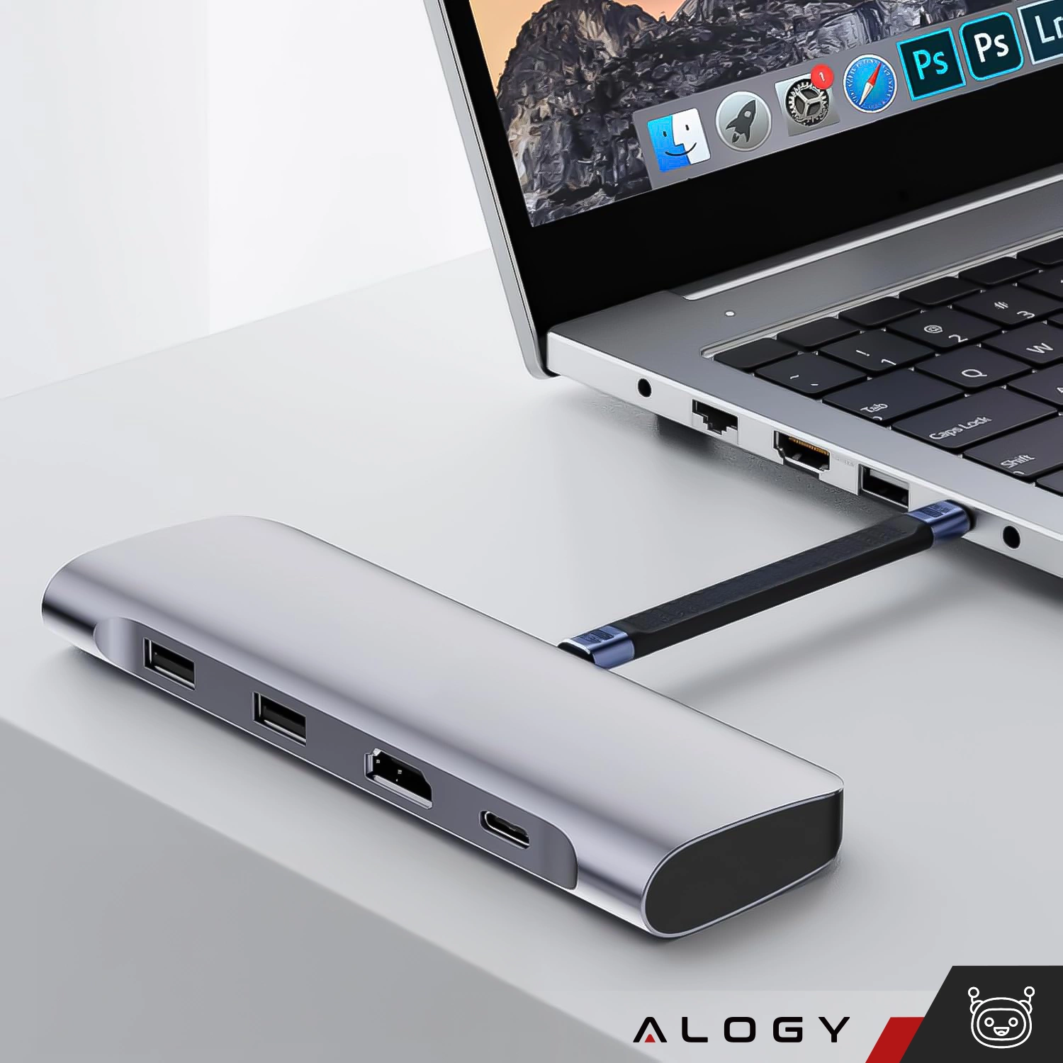 HUB-Splitter Alogy-Adapter für Computer-Laptop mit USB-C auf 3x USB-A 2.0 1x USB-A 3.0 Grau x 1