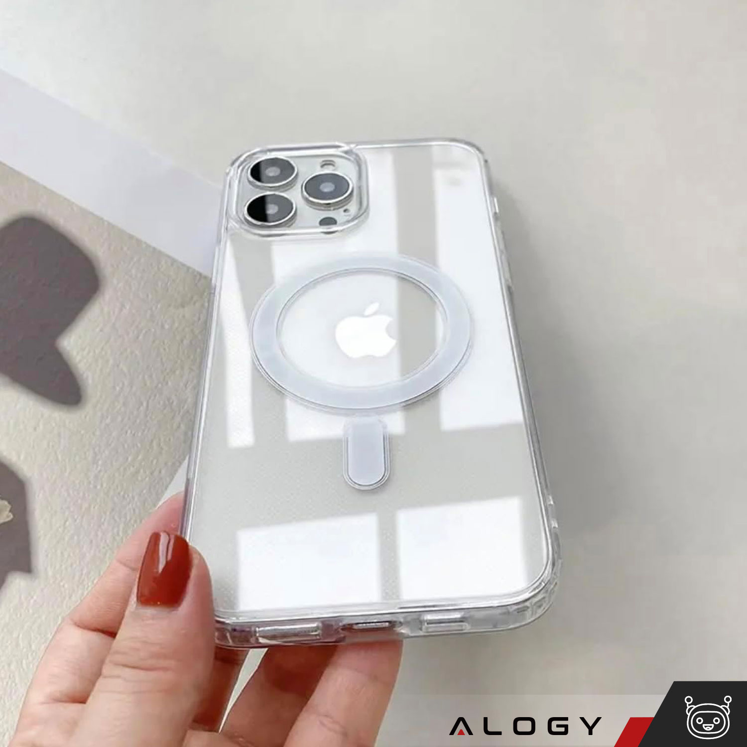 • Die Alogy Hybrid Case Cover Shock Clear Hülle für das iPhone 15 Pro MagSafe zeichnet sich durch zuverlässigen Schutz in jeder Situation aus. Das Gehäuse verfügt über einen Magneten, der mit Qi-Ladegeräten und Zubehör kompatibel ist.