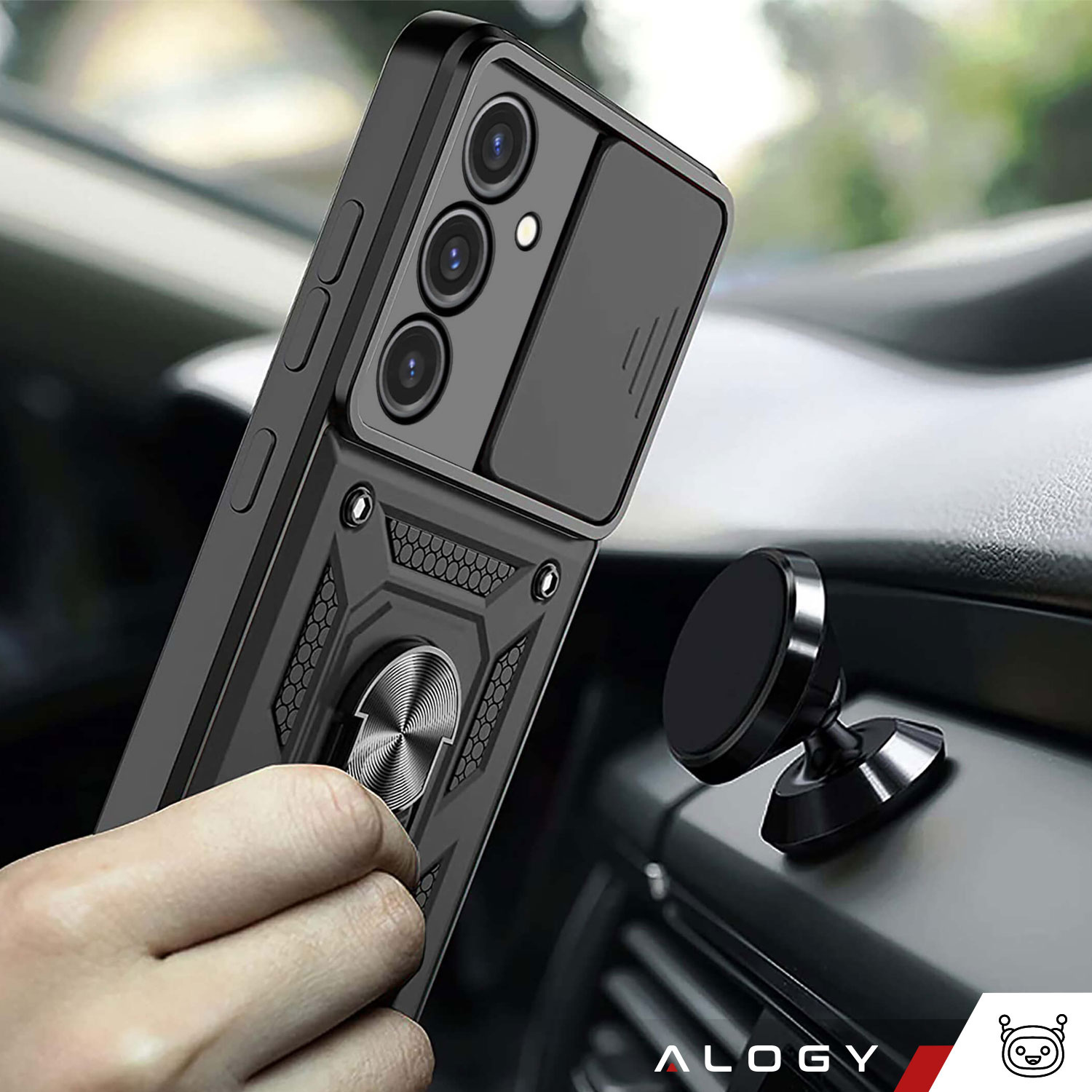 Hülle für Samsung Galaxy A35 5G Gepanzerte Schiebehülle Ringgehäuse Kameraschutz Camshield Alogy Schwarz x 1