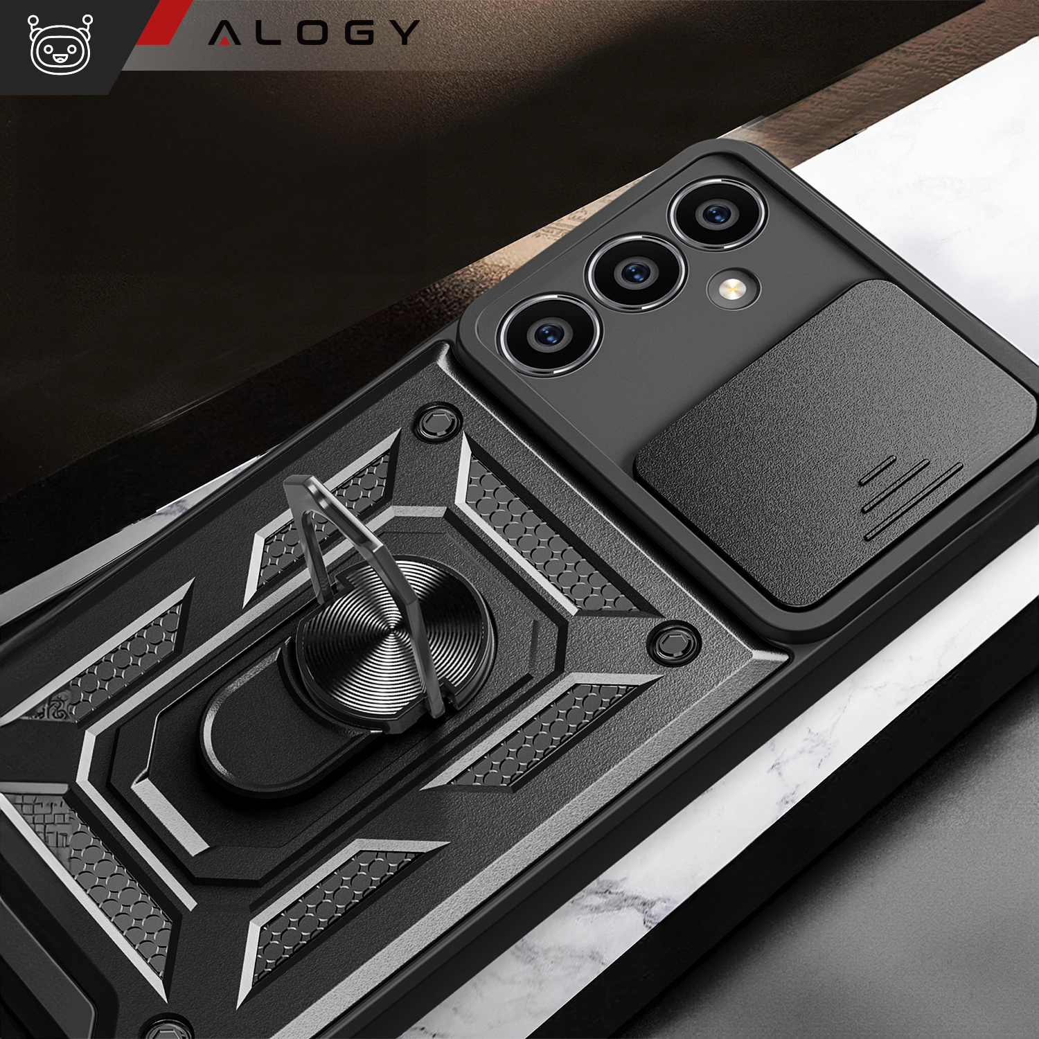 Original-Hybridgehäuse für Samsung Galaxy S23 FE aus der Alogy-Serie Camshield Ring Slide Case ist hoch gepanzert Fall, der auch in extremen Situationen funktioniert.