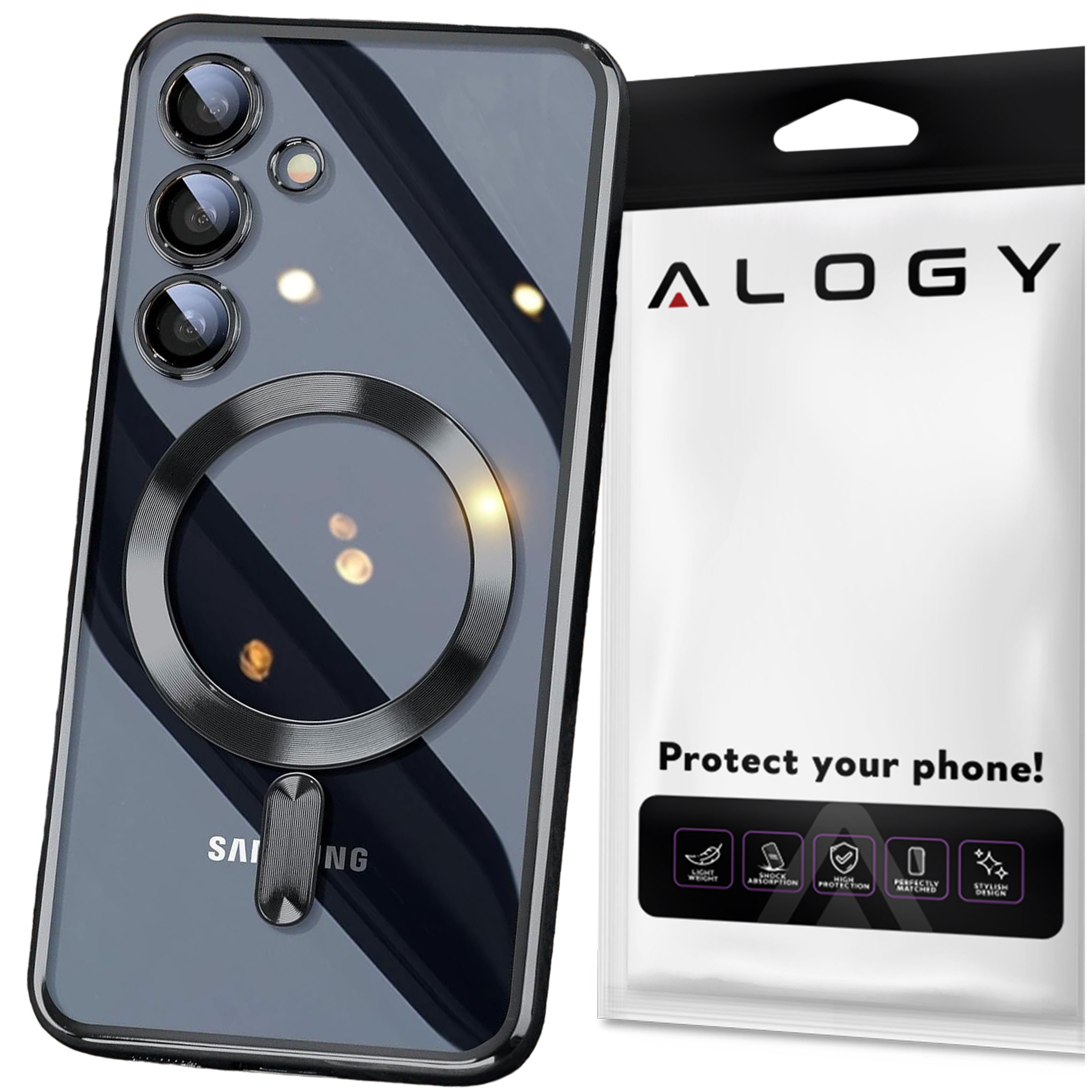 Hülle für Samsung Galaxy S24 Plus Mag Safe Glamour Case Ringgehäuse Kameraschutz Alogy Schwarz Transparent x 1