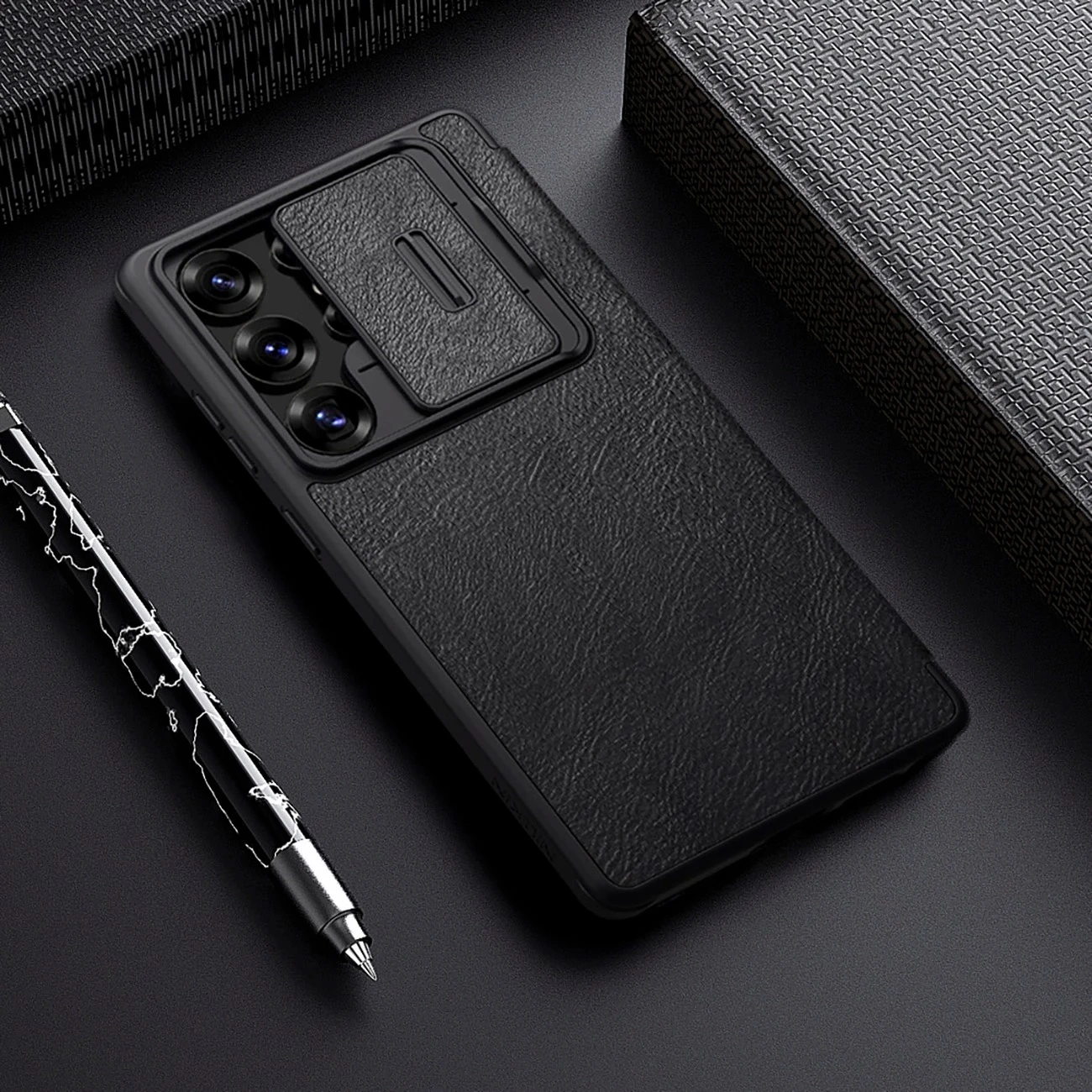 Hülle für Samsung Galaxy S25 Ultra Nillkin Qin Pro Schwarz mit Flip x 1