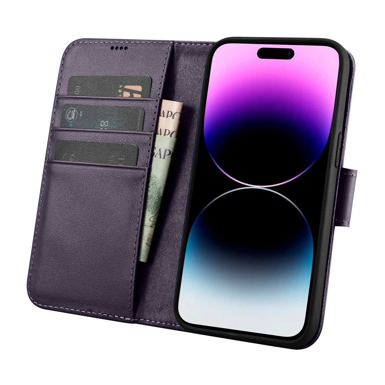 iCarer Wallet Case 2in1 Handyhülle für iPhone 14 Pro Max Anti-RFID Flip Lederhülle Dunkellila x 1