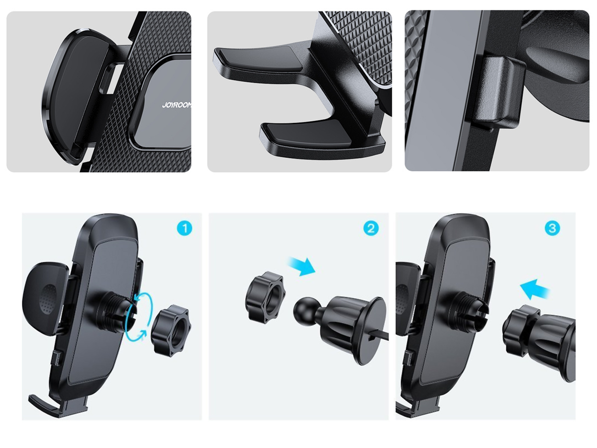 Die Joyroom Autohalterung ist aus den hochwertigsten Materialien hergestellt, dank denen ihre Struktur stabil und der Griff sicher ist. Die Anti-Rutsch-Oberfläche bietet einen noch effektiveren Schutz gegen das Abrutschen des Telefons. Der Halter hat verstellbare Arme , die sich an die Größe des Telefons anpassen.