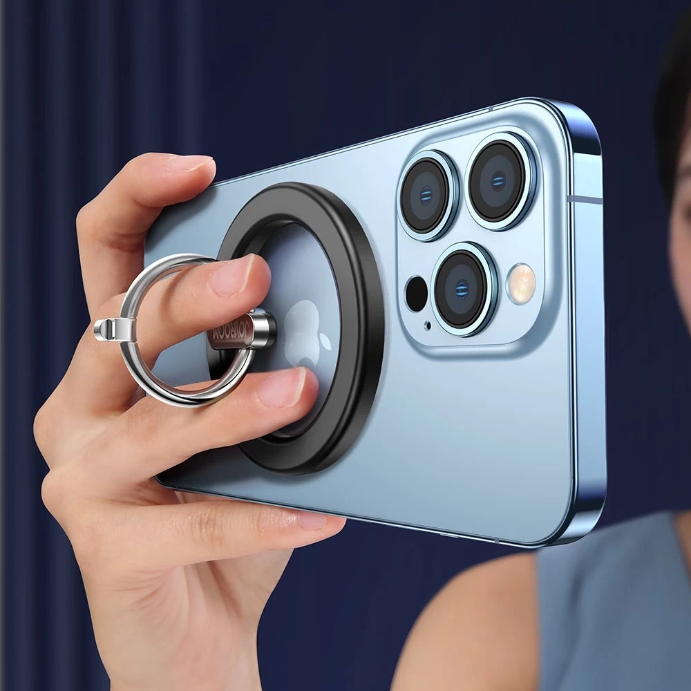 Der universelle 2-in-1-Magnethalter der renommierten Marke Joyroom wird für jeden Smartphone-Benutzer nützlich sein. Leicht und kompakt, ermöglicht es Ihnen, das Gerät unter allen Bedingungen bequem zu verwenden - bei der Arbeit, zu Hause und im Auto. Wir können es als Ständer oder Autohalter verwenden. Dank der eingebauten Magnete können Sie das Telefon horizontal und vertikal verwenden. Alles, was Sie tun müssen, ist, den Ring um 90 Grad zu drehen. Joyroom hat das Set für eine Traglast von bis zu 1200g ausgelegt, was einen sicheren Einsatz unter härtesten Bedingungen gewährleistet. Es ist mit allen iPhone-Modellen ab der 12. Generation kompatibel, die über die MagSafe-Funktion verfügen. Wenn Ihr Telefon nicht über MagSafe verfügt, können Sie außerdem die Metallabdeckung verwenden und sie in Verbindung mit dem Magnetring verwenden.