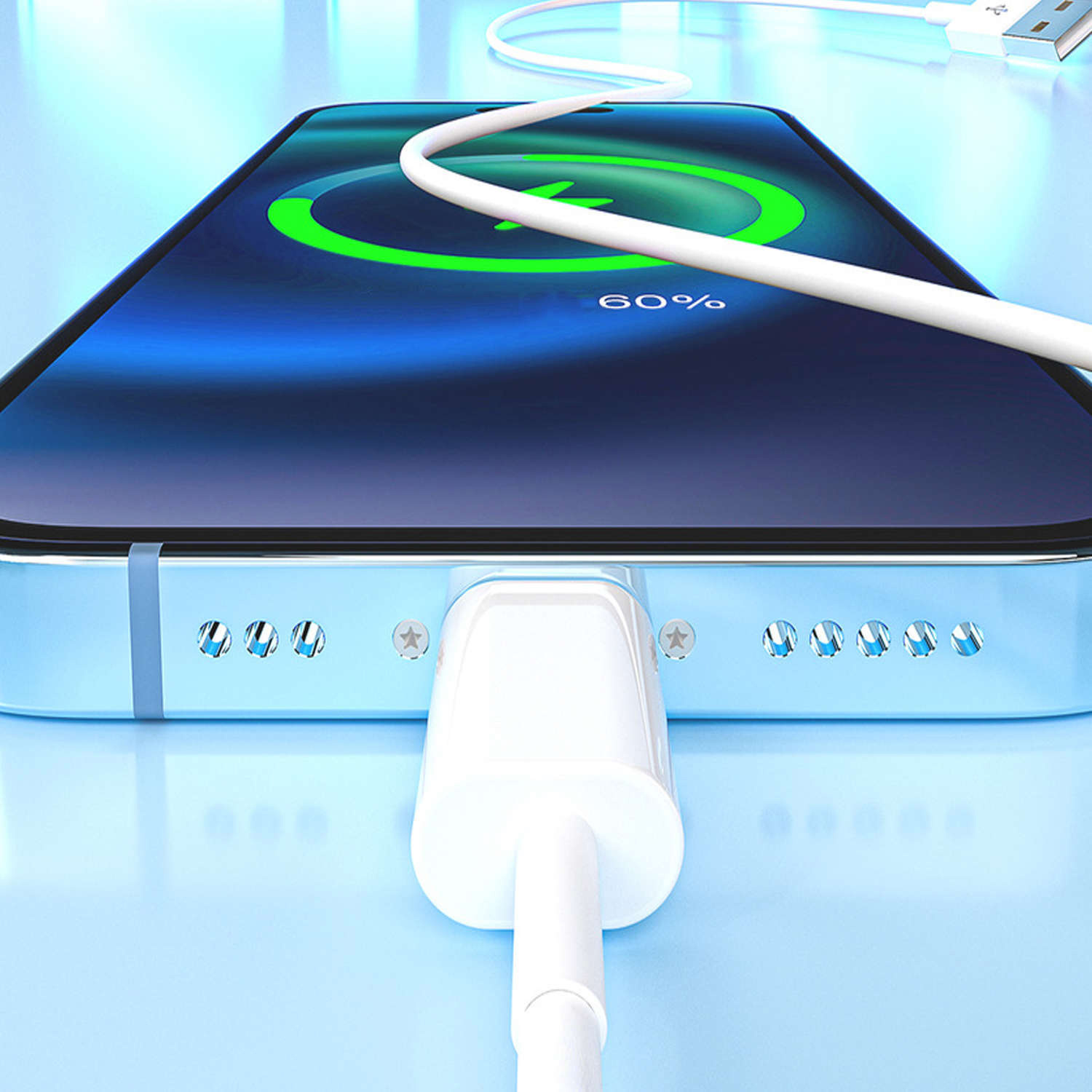 Mit dem Lightning-auf-USB-A-Kabel können Sie Ihre Geräte schnell und sicher aufladen und Daten übertragen.