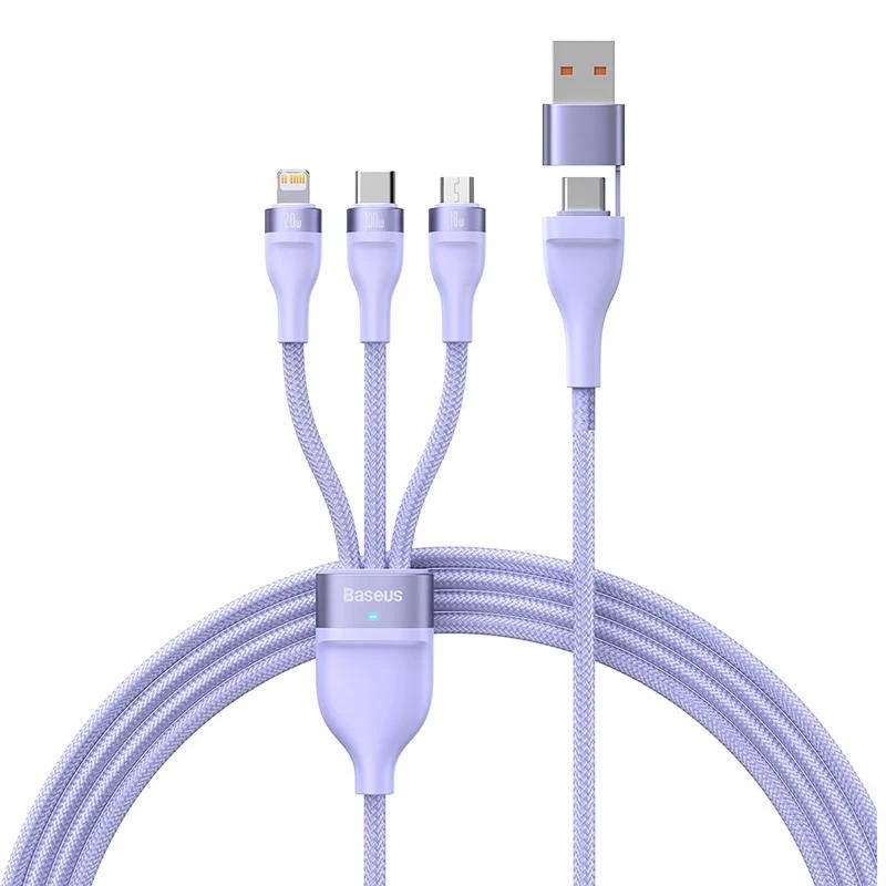 Kabel USB 3w1 Baseus Flash Series 2, USB-C Micro USB Lightning, 100W, 1,5m (Fioletowy) x 1