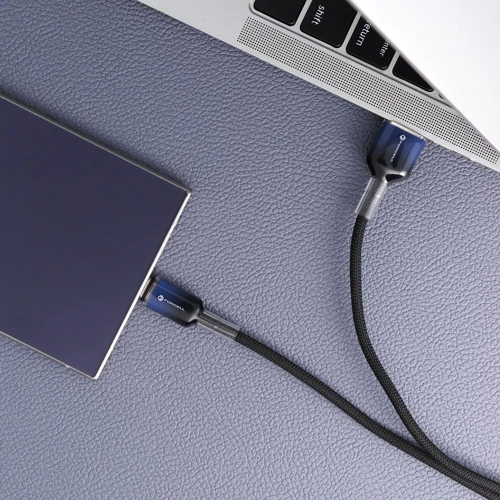 Kabel USB-A do USB-C Forcell F-Energy Gradient C352 to niezawodne i trwałe akcesorium stworzone do szybkiego oraz bezpiecznego ładowania nowoczesnych smartfonów i tabletów. Dzięki obsłudze technologii Quick Charge™ 4.0 oraz SUPERVOOC, przewód oferuje moc ładowania 66 W, co znacząco skraca czas uzupełniania energii w kompatybilnych urządzeniach.