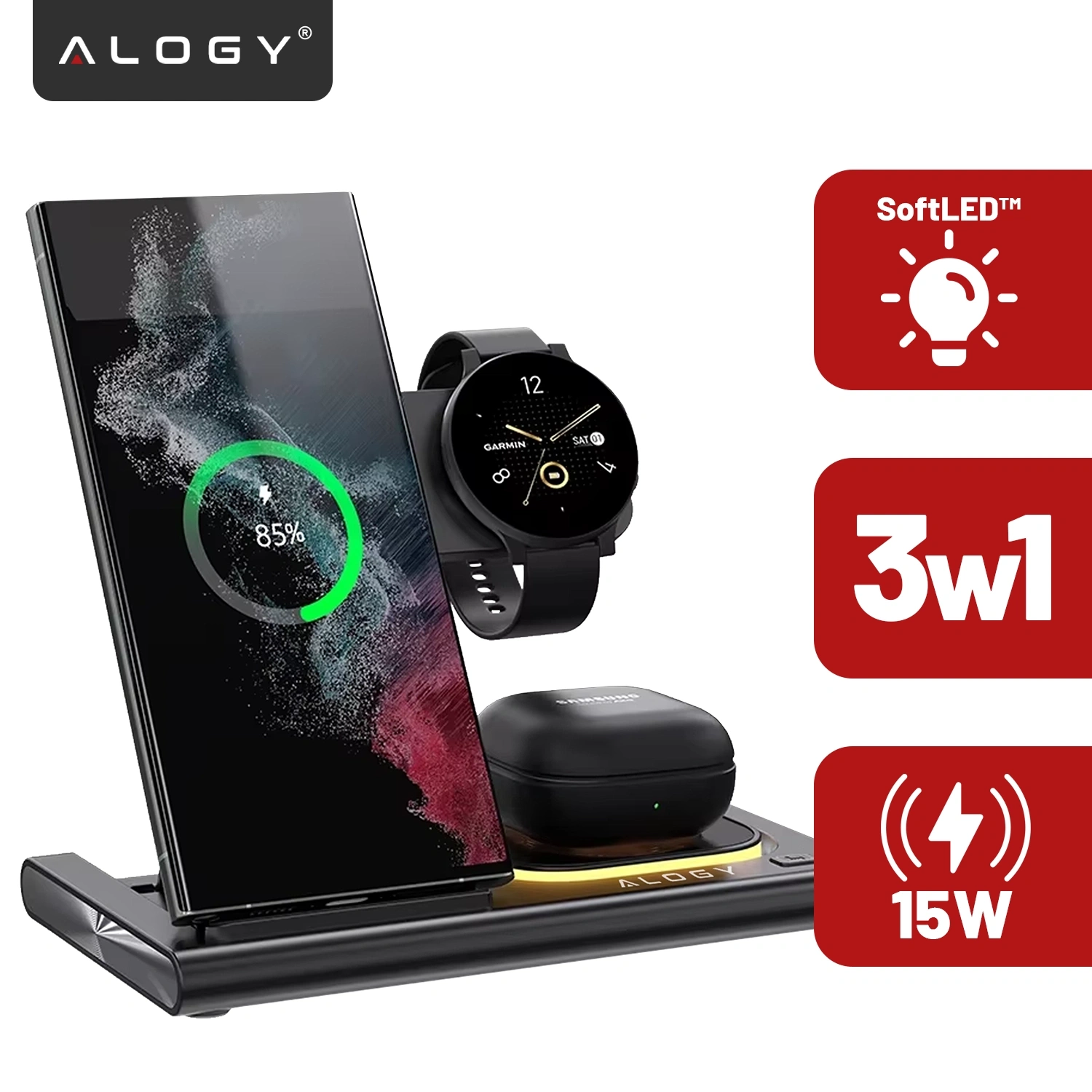 Das multifunktionale Induktionsladegerät Alogy ist ein innovatives Gerät, mit dem Sie drei verschiedene Geräte gleichzeitig laden können.