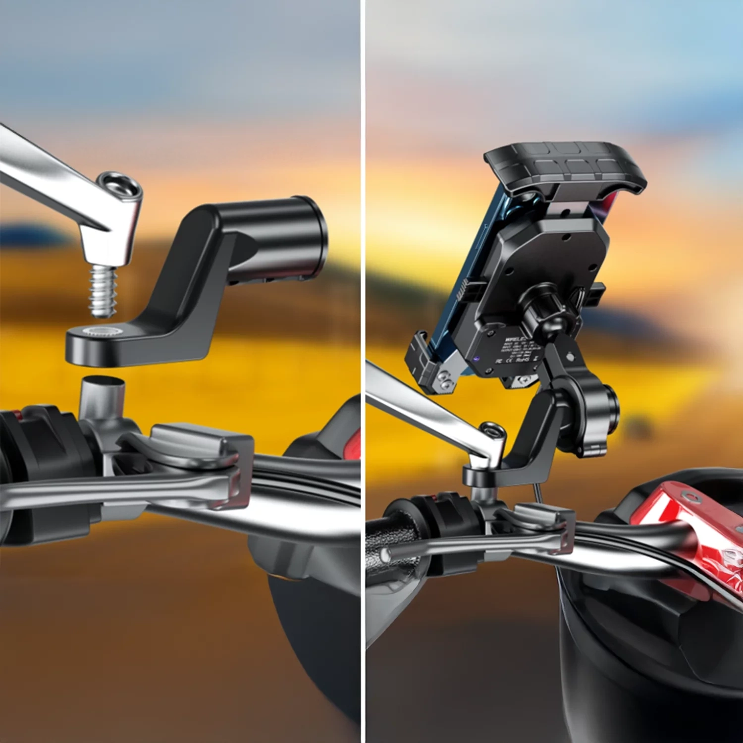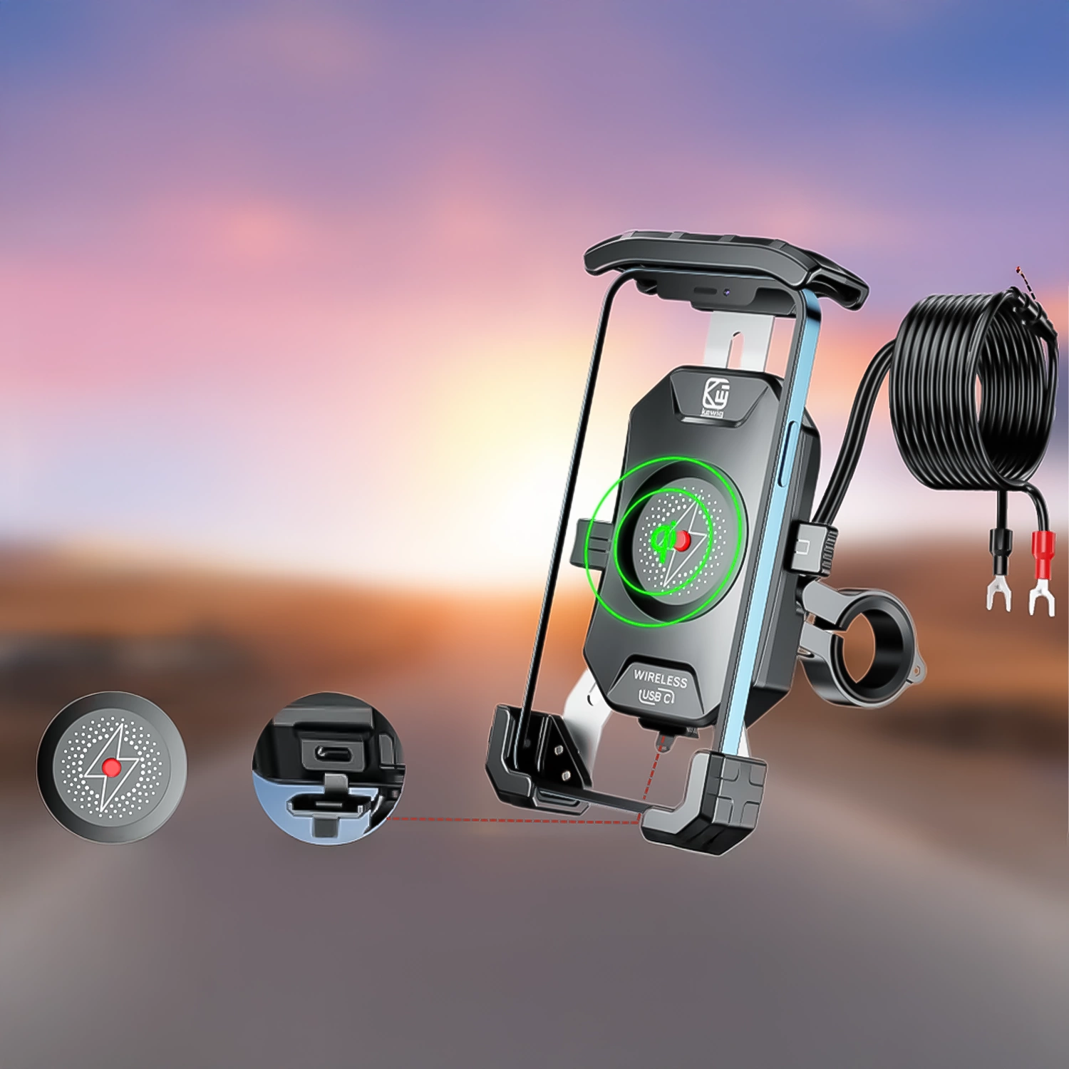 Die Kewig M14-A1 Motorradhalterung ist eine innovative Lösung für Motorradfahrer, die Wert auf Komfort und Sicherheit legen. Dank des integrierten 15-W-Qi-Induktionsladegeräts und des USB-C-Anschlusses können Sie Ihr Smartphone während der Fahrt mit Motorrad, Roller oder ATV schnell aufladen .