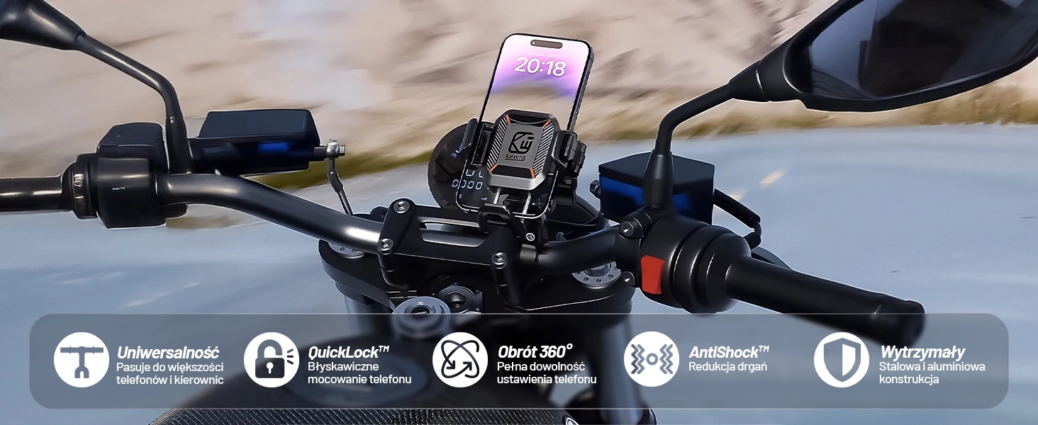 ⭐ Neuestes Modell ⭐ AntiShock™ – Stoßdämpfungssystem ⭐ QuickLock™ – blitzschnelle Montage und Demontage ⭐ Full360™ – Drehung in jeder Ebene ⭐ Kompatibel mit Smartphones von 5,4 bis 7,2 Zoll ⭐ Montage an Lenkern mit 22–32 mm Durchmesser ⭐ Konstruktion aus Aluminium, Edelstahl und ABS ⭐ Regen- und hitzebeständig ⭐ Schlankes, kompaktes Design ⭐ 10 Jahre Branchenerfahrung ⭐
