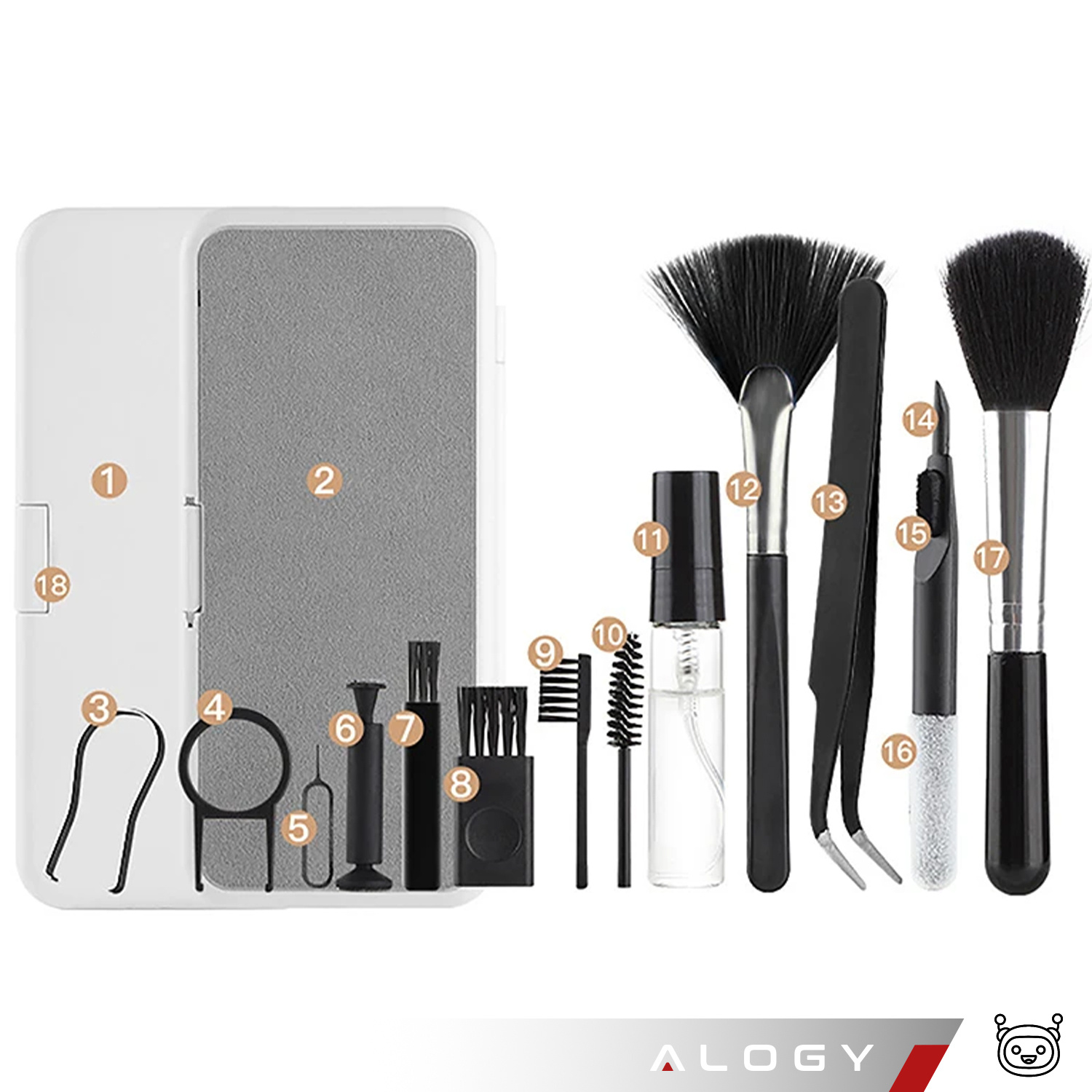 Das Reinigungsset Alogy Cleaner Set 18in1 für kleine Elektronikgeräte ist umfassend Lösung zum Sauberhalten verschiedener elektronischer Geräte an schwer zugänglichen Stellen, wie zum Beispiel: Telefone, Smartphones, Computer, Uhren, Kopfhörer, Lautsprecher, Kameras und Tastaturen.