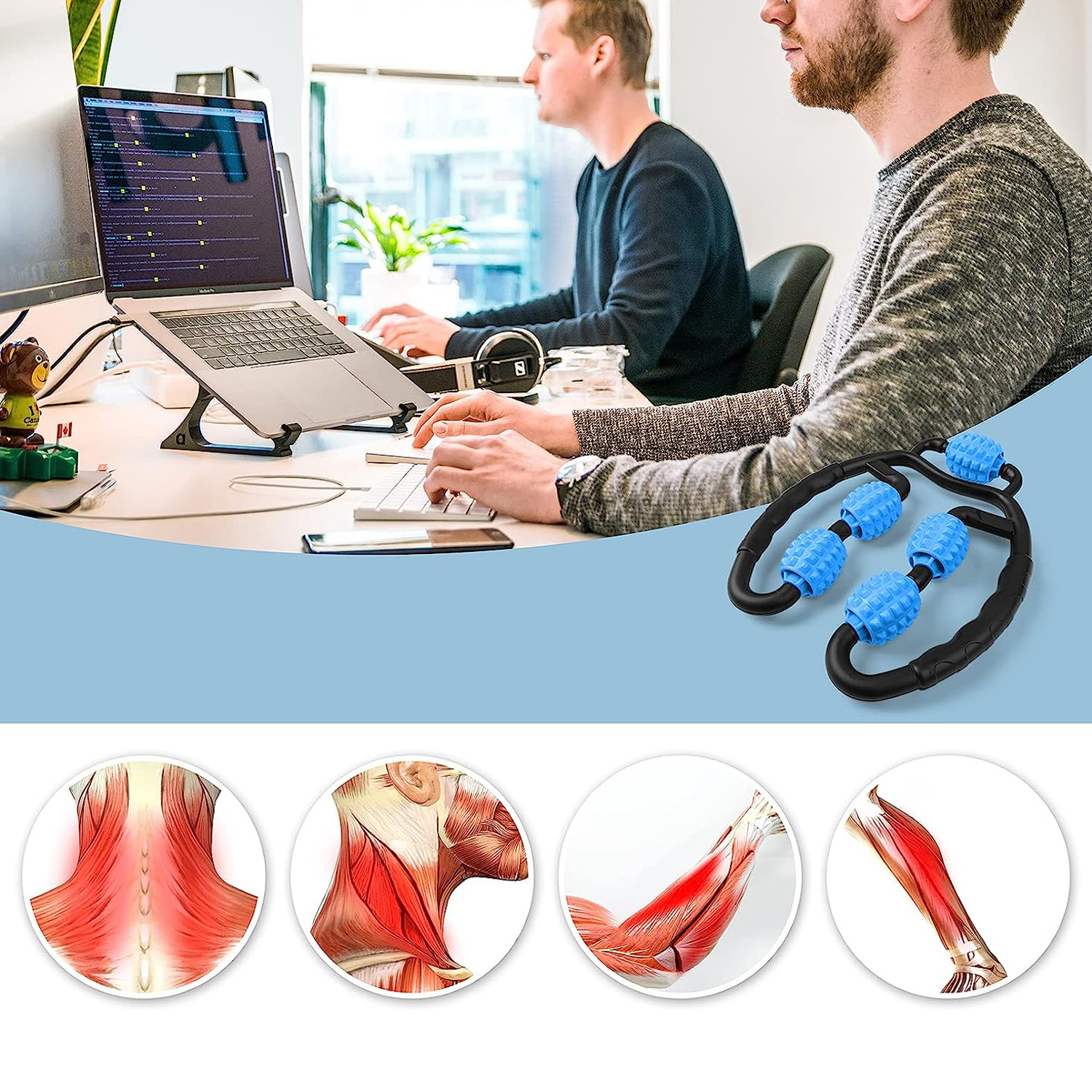 Körpermassagegerät Anti-Cellulite Manueller Muskelroller Alogy 5x Massageroller Universalroller Schwarz und Blau x 1