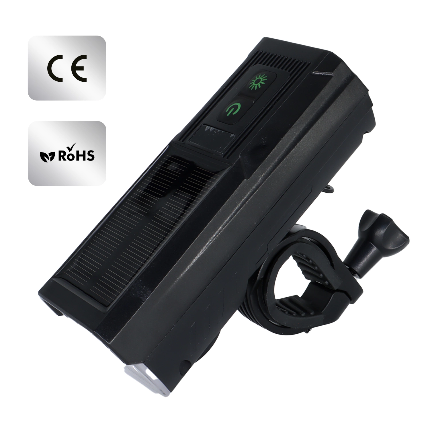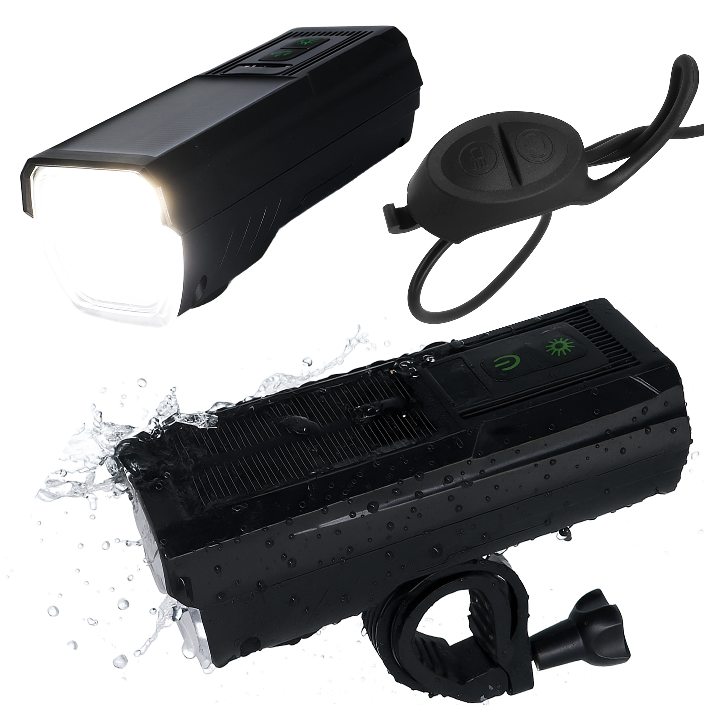 LED-Fahrradfrontlicht mit Solarpanel und Hupe, superhell (1000 lm, 4400 mAh), wasserdicht, schwarz x 1
