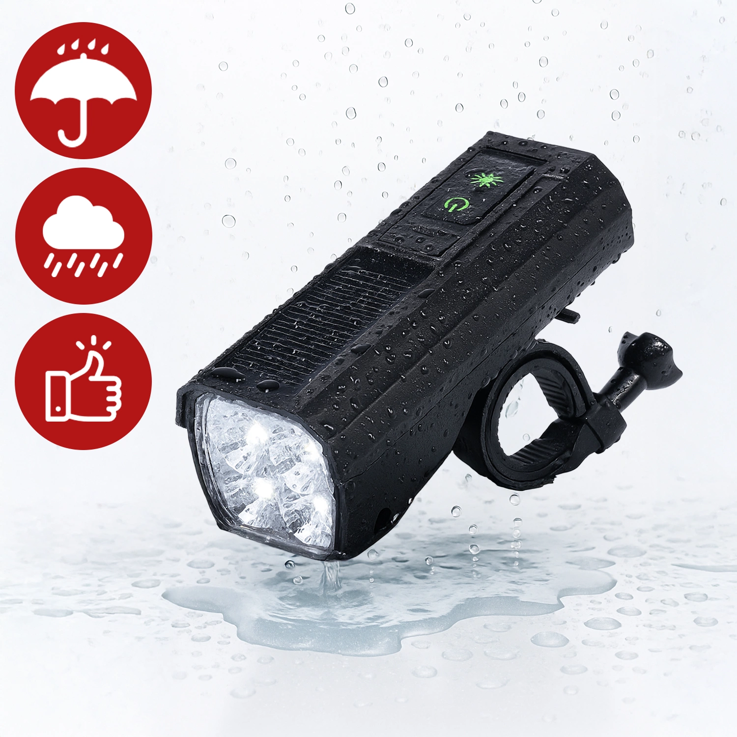 ✅ Das IPX4-Zertifikat bedeutet effektiven Schutz vor Spritzwasser und Regen, was einen zuverlässigen Betrieb der Lampe bei allen Wetterbedingungen gewährleistet – eine ideale Lösung für aktive Radfahrer zu jeder Jahreszeit.