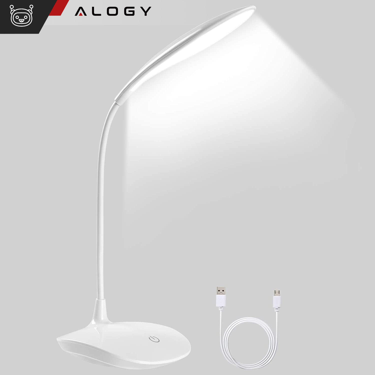 LED-Schreibtischlampe für Schreibtisch, Touch, Touch, Schule, USB, stehend, Nacht, kabellos, flexibel, Alogy, Weiß x 1