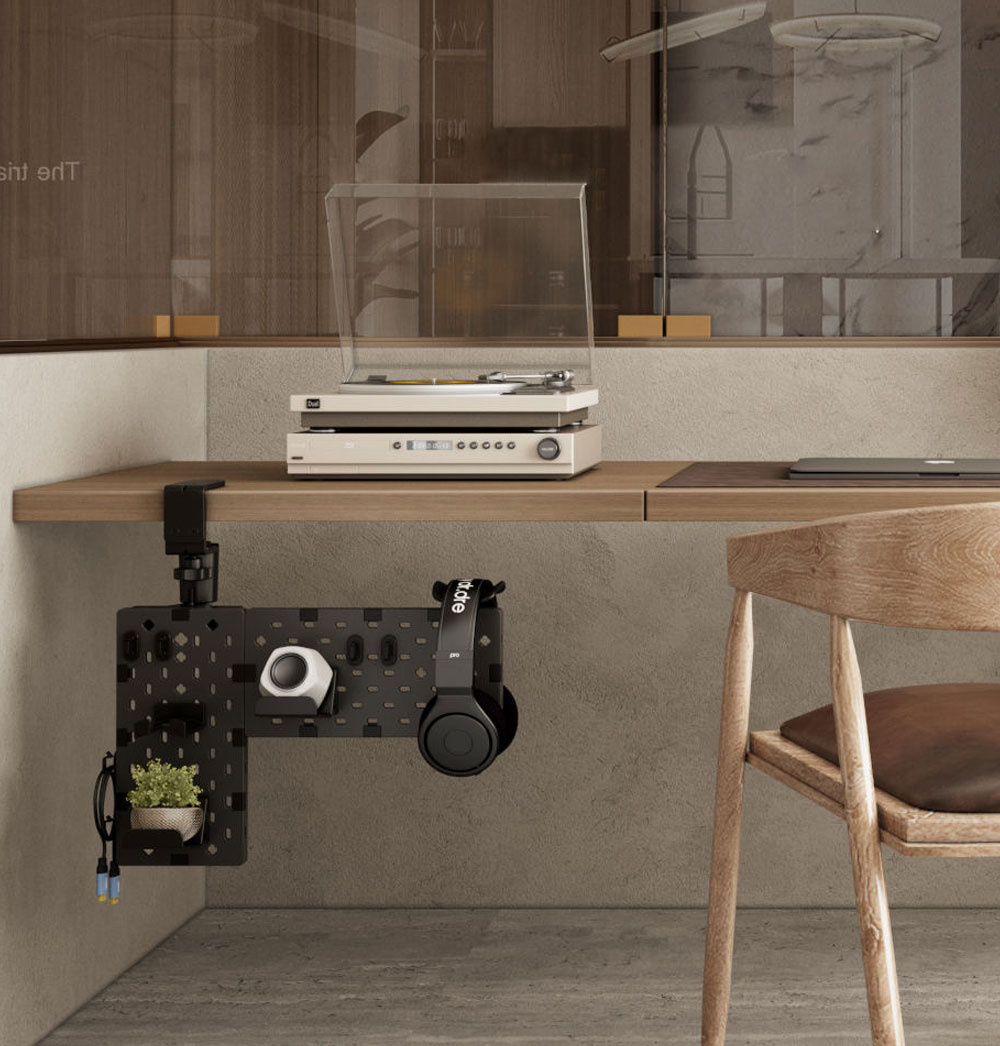 • Perforiertes Brett Schreibtisch-Organizer für den Tischständer für Kopfhörer GamePad-Kabel organisieren alle Zubehörteile, wodurch wir mehr Platz auf dem Schreibtisch gewinnen. Sein minimalistisches Design passt perfekt in jedes Interieur.