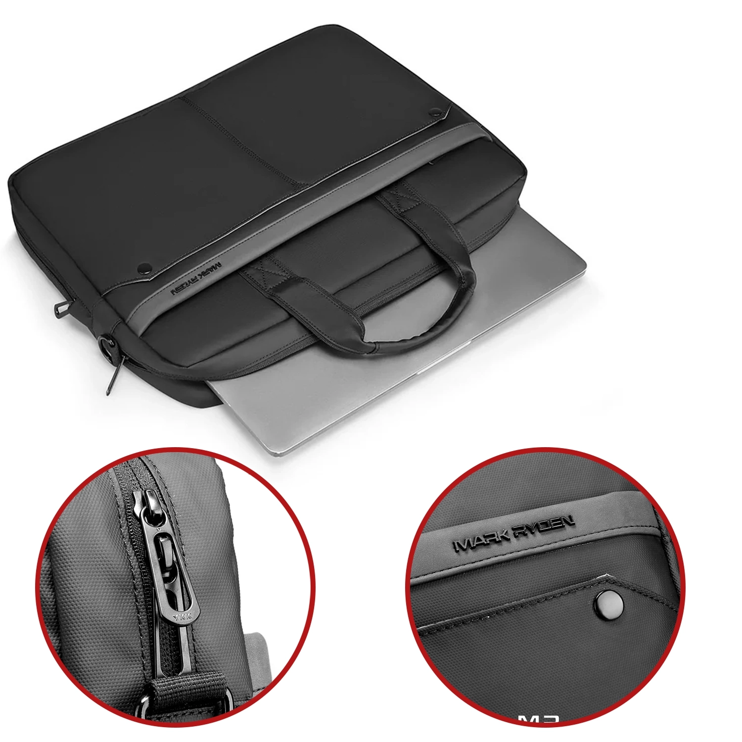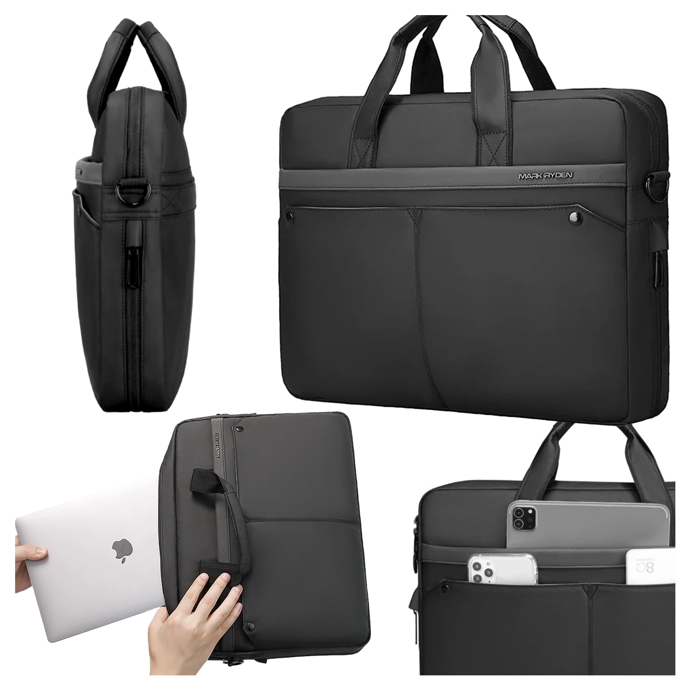 Mark Ryden 14"-Laptoptasche, wasserdicht, elegant und geräumig, leicht (0,5 kg), mit Laptopfach, 9,7"-Tabletfach und Tragegurt – Schwarz x 1