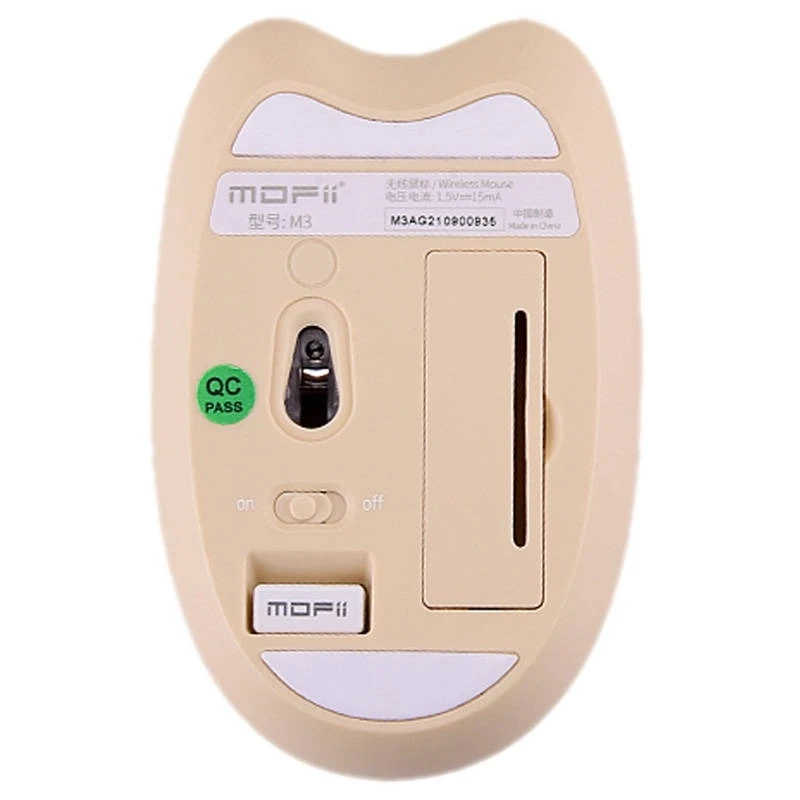 MOFII M3DM ist eine niedliche kabellose Maus in Katzenform. Es ist ideal für Menschen, die das originelle Design von Geräten schätzen. Es wird auch eine geeignete Wahl für Kinder sein. Es ermöglicht eine 3-stufige Auflösungseinstellung bis zu 1600 DPI und ist sehr bequem zu bedienen. Das Gerät verbindet sich mit einem Computer im 2,4-G-Band und über Bluetooth 4.0 und wird von einer AA-Batterie (im Lieferumfang enthalten) mit Strom versorgt.