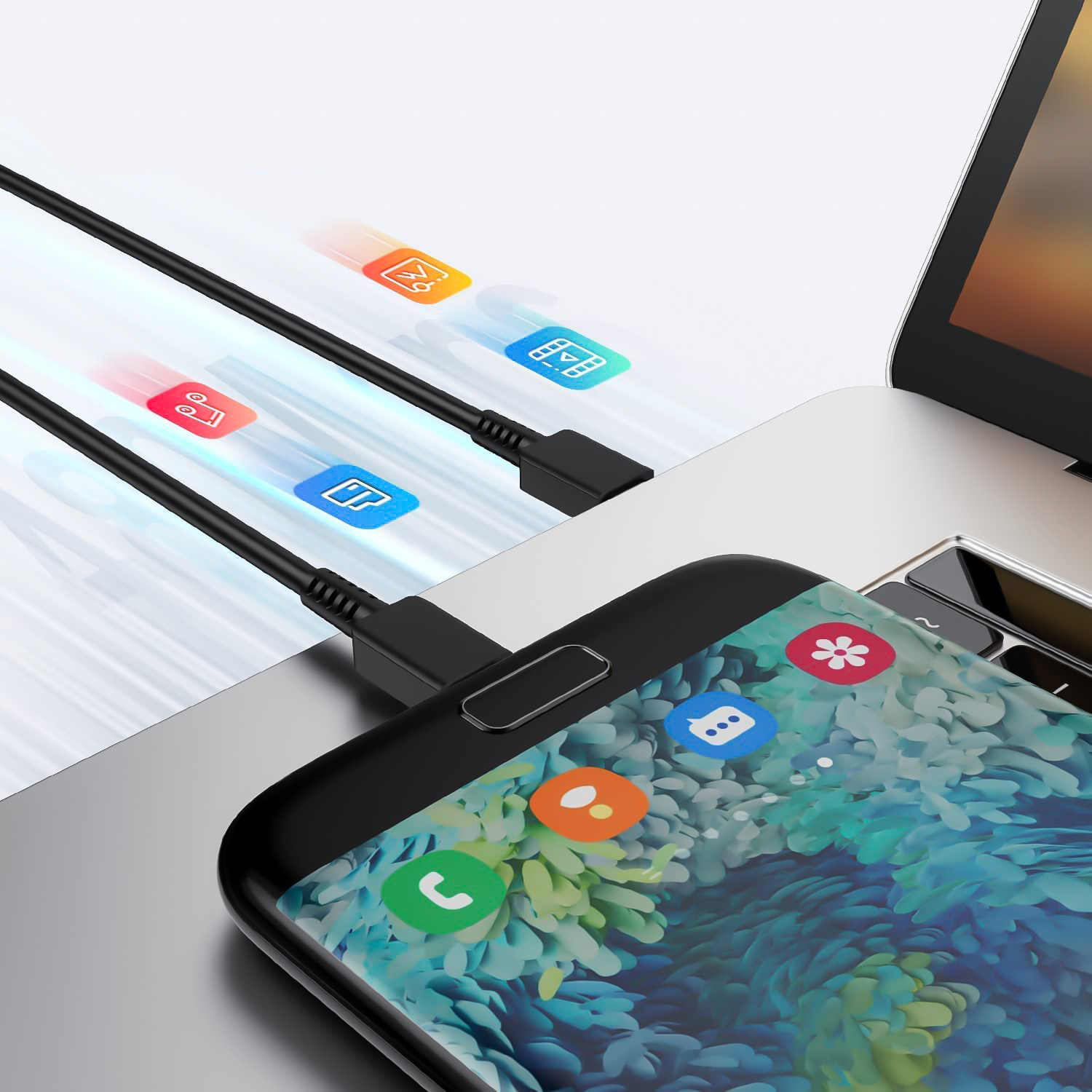 Das USB-C-zu-USB-C-Kabel ermöglicht gleichzeitiges Laden und Datensynchronisieren.