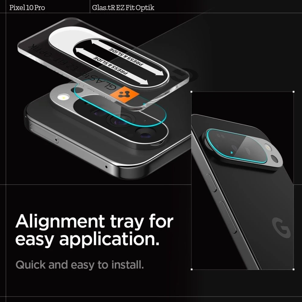 Osłona aparatu Spigen Optik Glas.TR Camera Protector do Google Pixel 10 Pro to nowoczesne szkło hartowane, które gwarantuje najwyższy poziom ochrony obiektywów przy jednoczesnym zachowaniu ich pełnej funkcjonalności. Dzięki ramce montażowej instalacja jest wyjątkowo prosta i precyzyjna — nawet dla osób, które po raz pierwszy montują szkło ochronne.