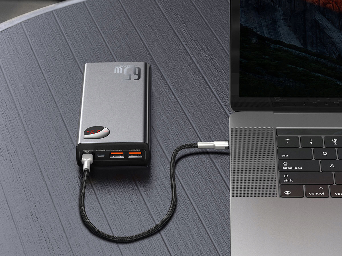 Die Powerbank hat eine Leistung von 65W und eine Kapazität von 20.000 mAh. Es unterstützt das Zwei-Wege-Schnellladen im Power Delivery 20W (iPhone 12) Quick Charge 4.0 3.0 Huawei SCP 5A-Standard, wodurch mobile Geräte extrem schnell aufgeladen werden.