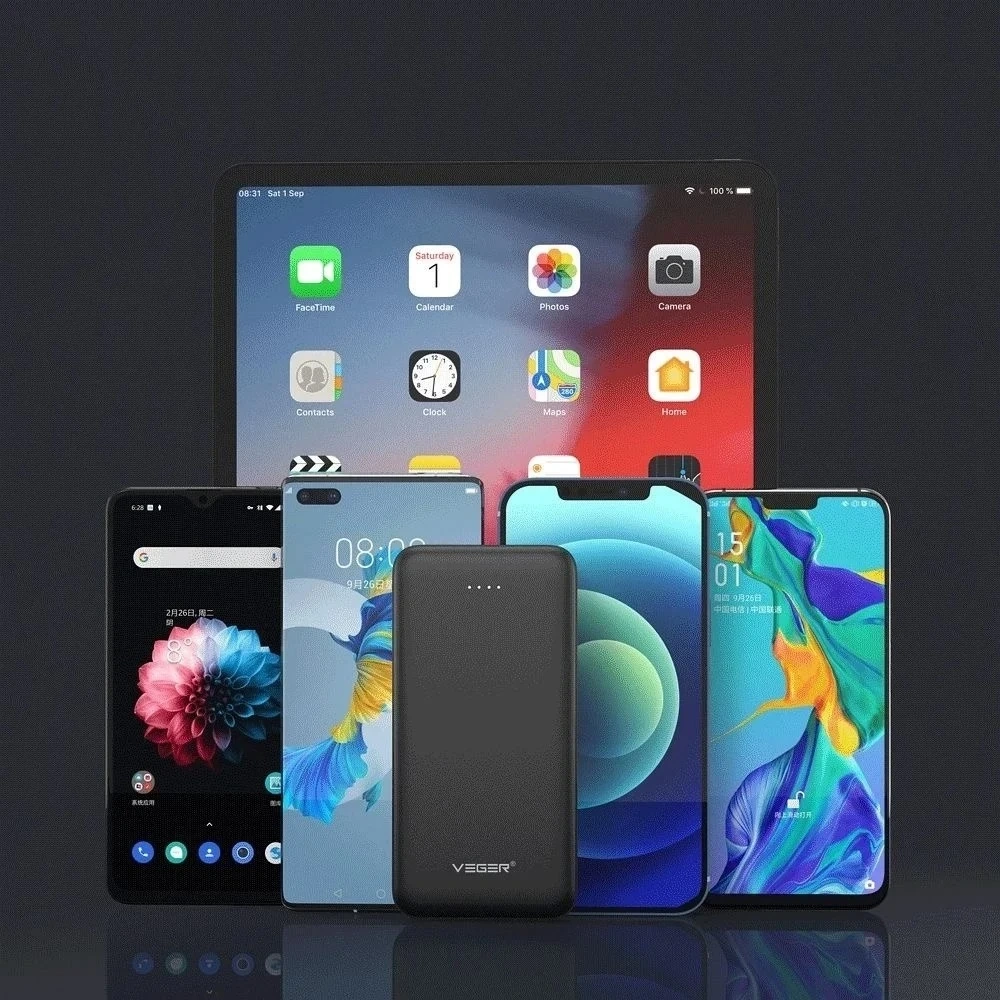 Die Powerbank Veger A10 mit einer Kapazität von 10.000 mAh garantiert schnelles Aufladen überall und jederzeit.