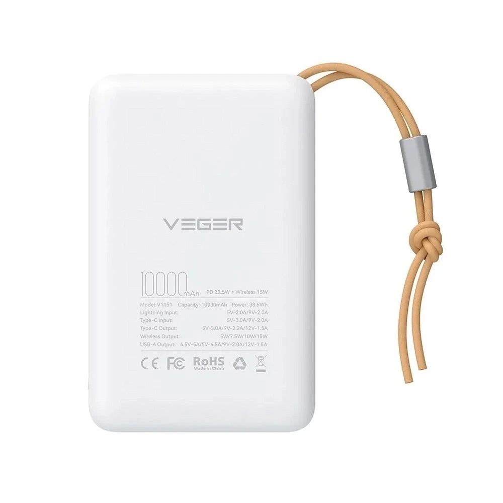 Powerbank Externer Akku VEGER MagOn mit Qi-Ladung für MagSafe 15W - 10.000mAh PD 22,5W weiß (VP1151 / W1151) x 1