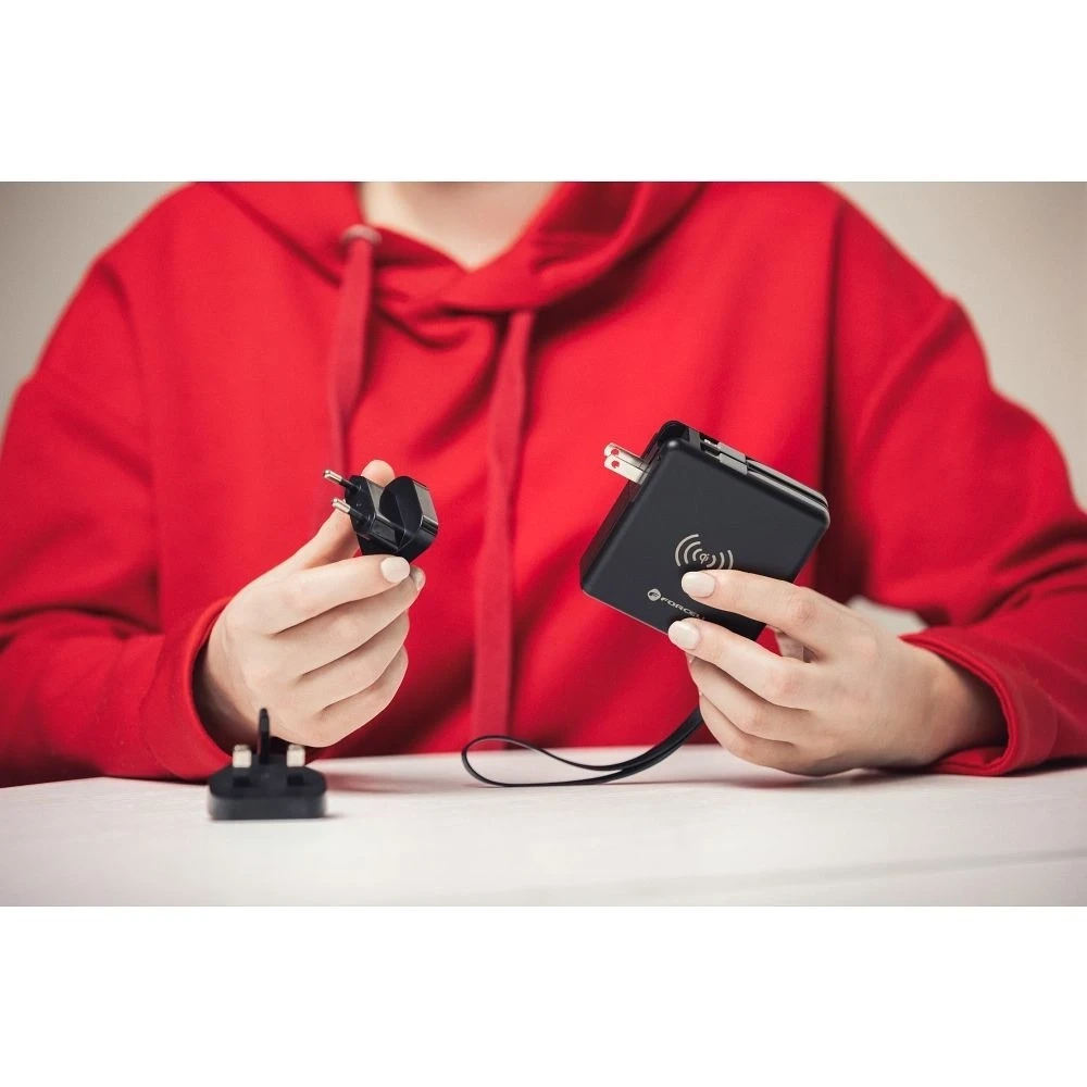 Suchen Sie nach einem Gerät, das alle Ladegeräte in Ihrem Gepäck ersetzt? Das Forcell KP-super6 ist ein kompaktes, multifunktionales Reiseladegerät, das ein Wandladegerät , induktives Laden , eine 10.000 mAh-Powerbank , integrierte Kabel und Reisetipps in einem vereint!
