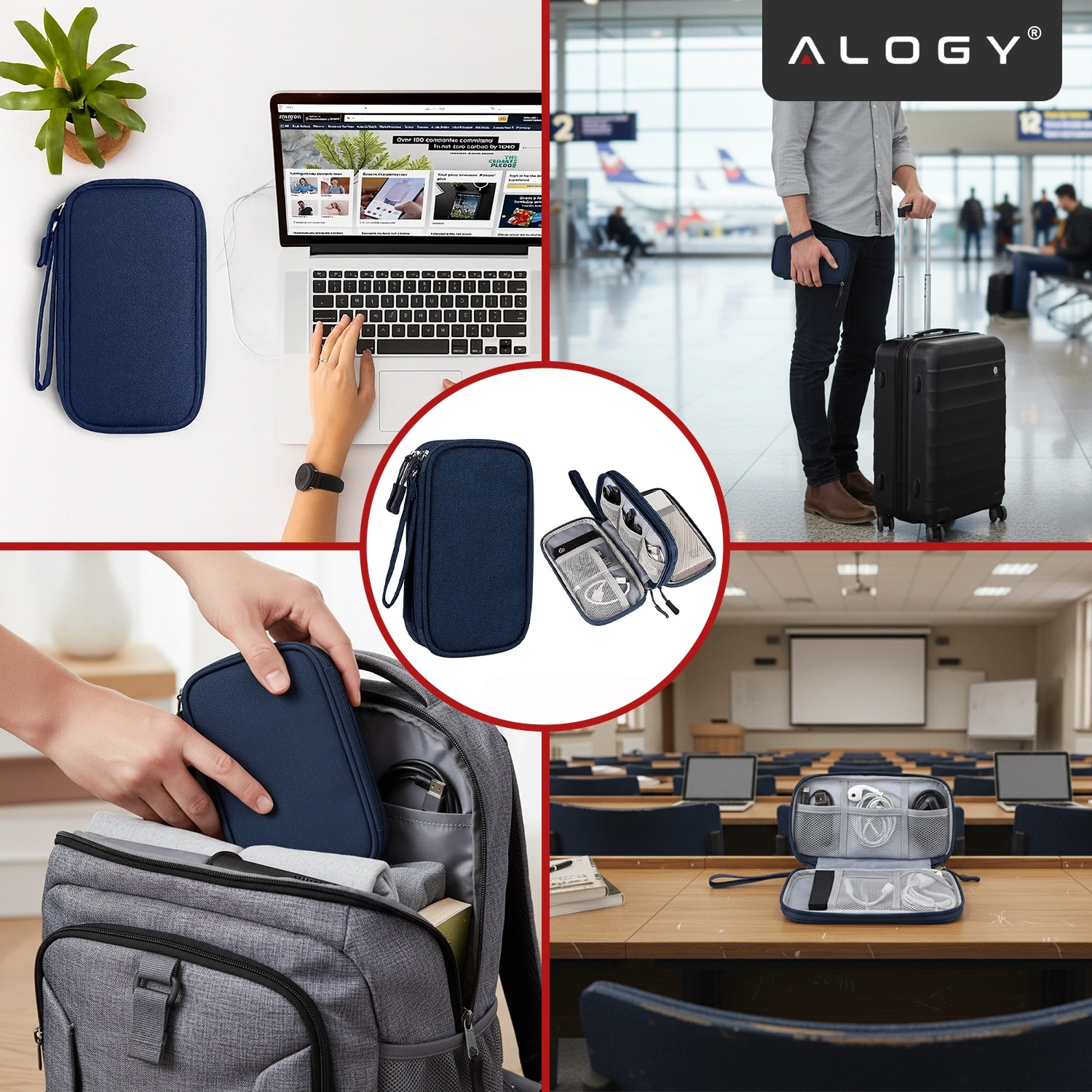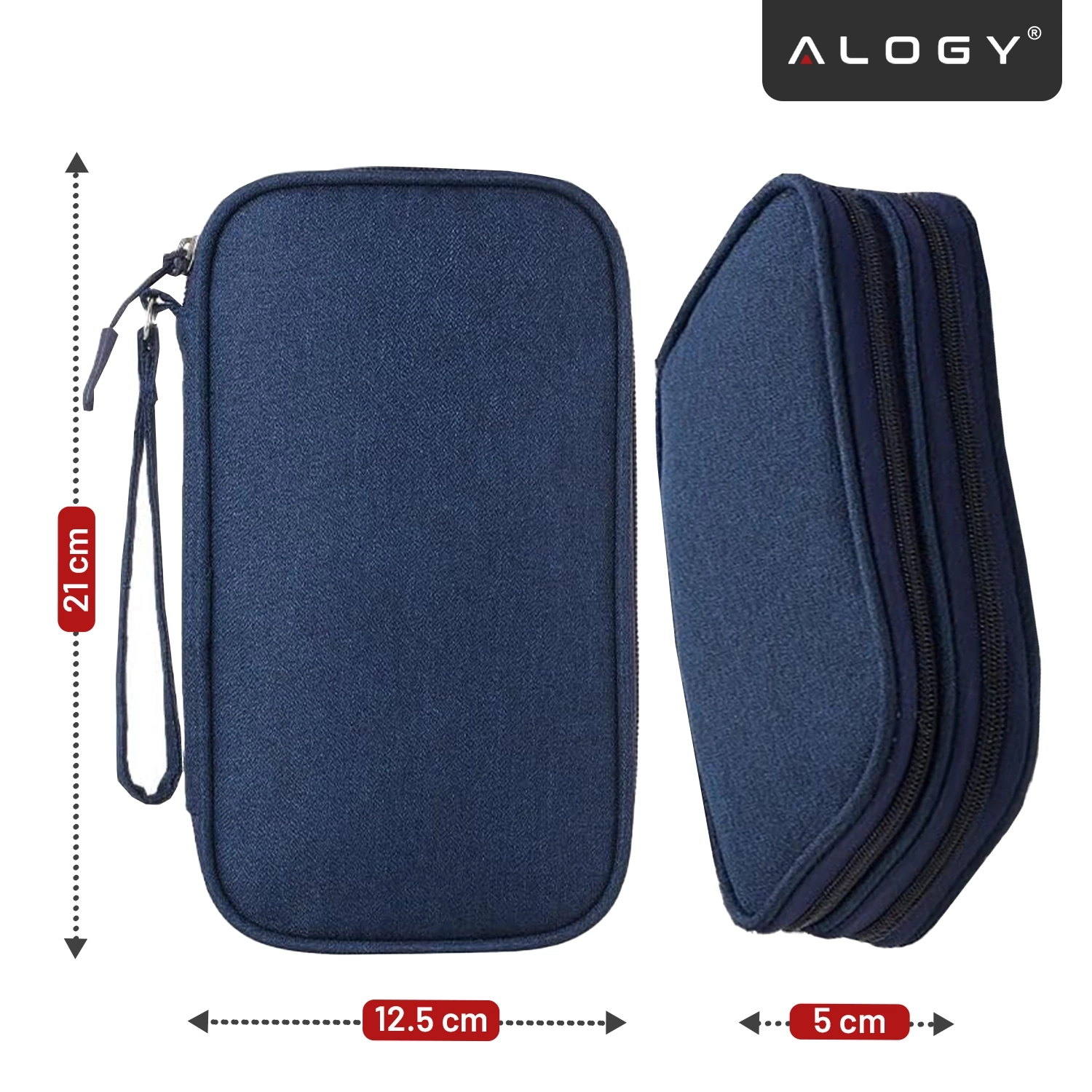 Reiseetui mit Organizer für Kabel, Ladegeräte, Handy und Powerbank, multifunktional und kompakt (21 x 12,5 x 5 cm), Alogy TravelPack™ – Marineblau x 1