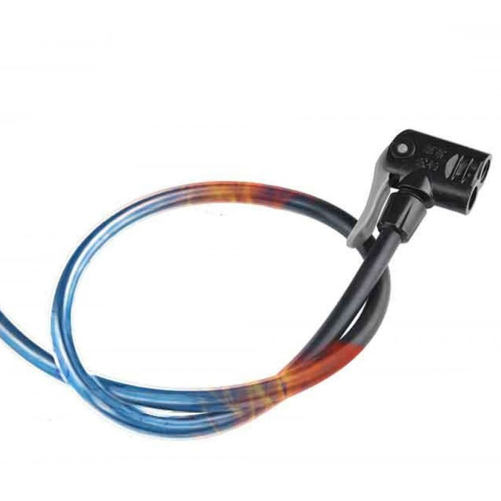Das Zubehör hat einen eingebauten Metallfuß , der das Aufpumpen des Reifens erleichtert. Dank dessen bleibt die Pumpe fest am Boden haften. Das 42 cm lange Rohr erhöht den Bedienkomfort zusätzlich und der speziell profilierte Griff liegt angenehm in der Hand.