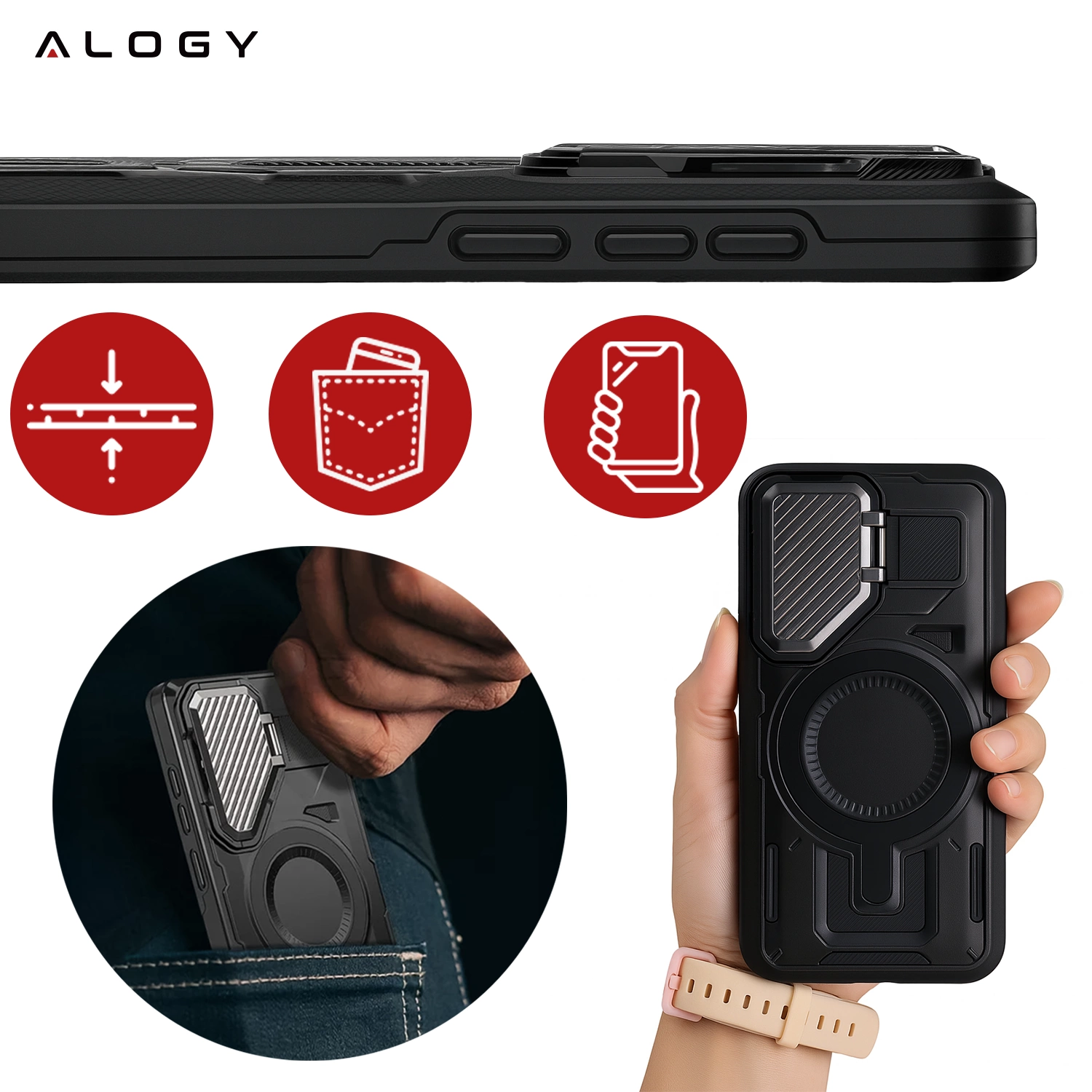 Samsung Galaxy S25 Plus Schutzhülle mit MagSafe-Verstärkung, verstärktem Linsenschutz und Standfunktion, Alogy HeavyDuty Mag™️ Schwarz x 1