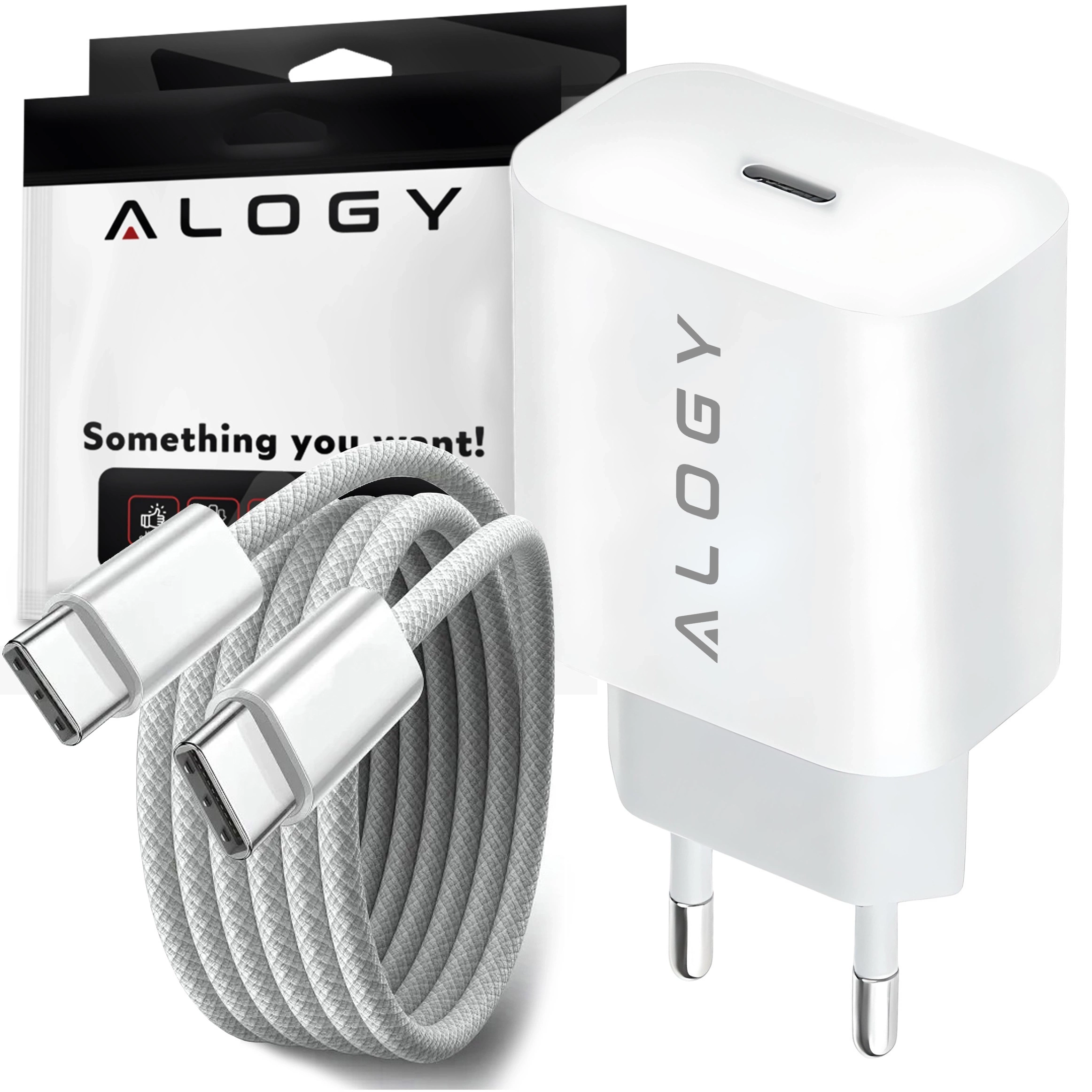 Schnelles 30-W-USB-C-Wandladegerät USB Typ C GaN PD für iPhone Alogy Cube Weißes USB-C-Kabel 1 m x 1