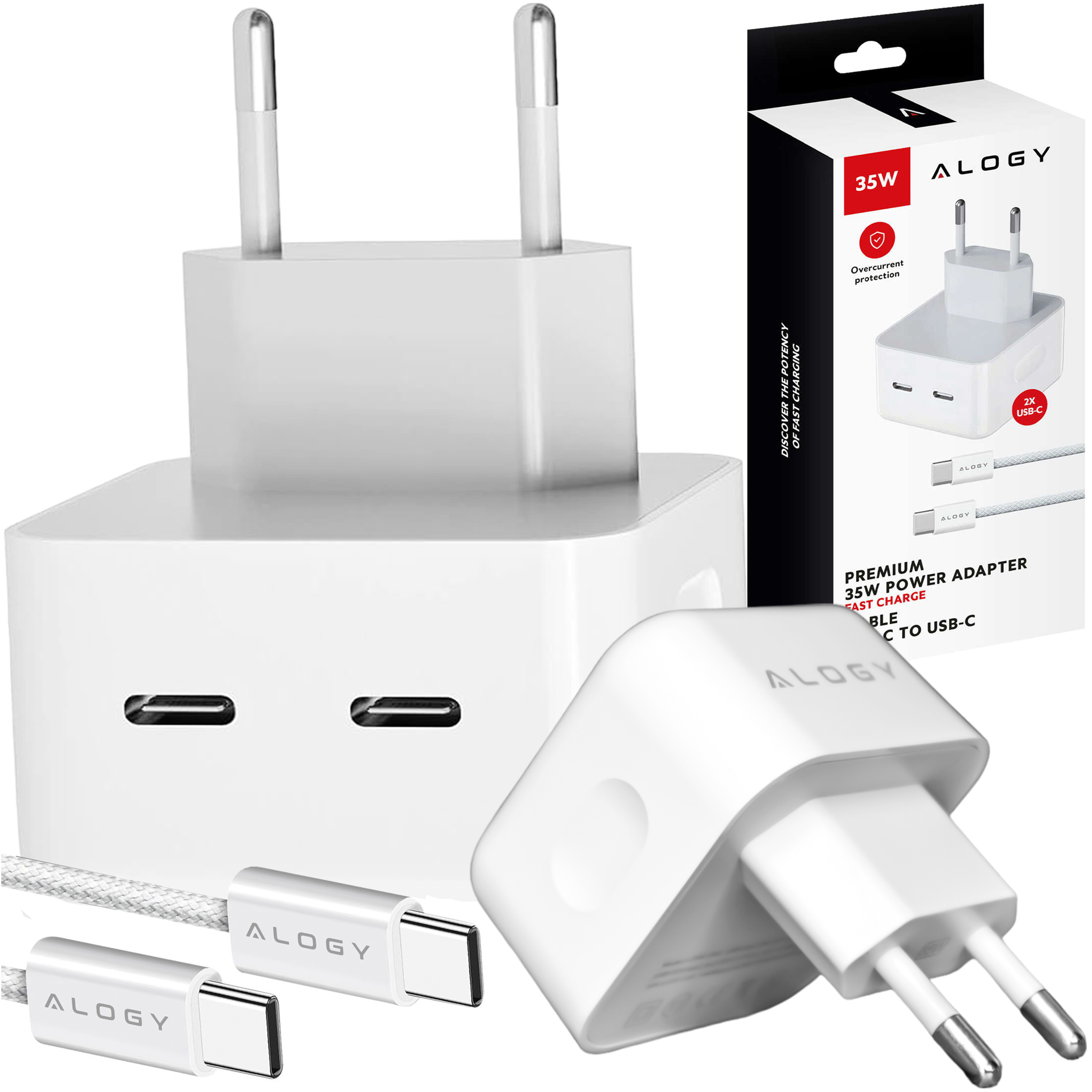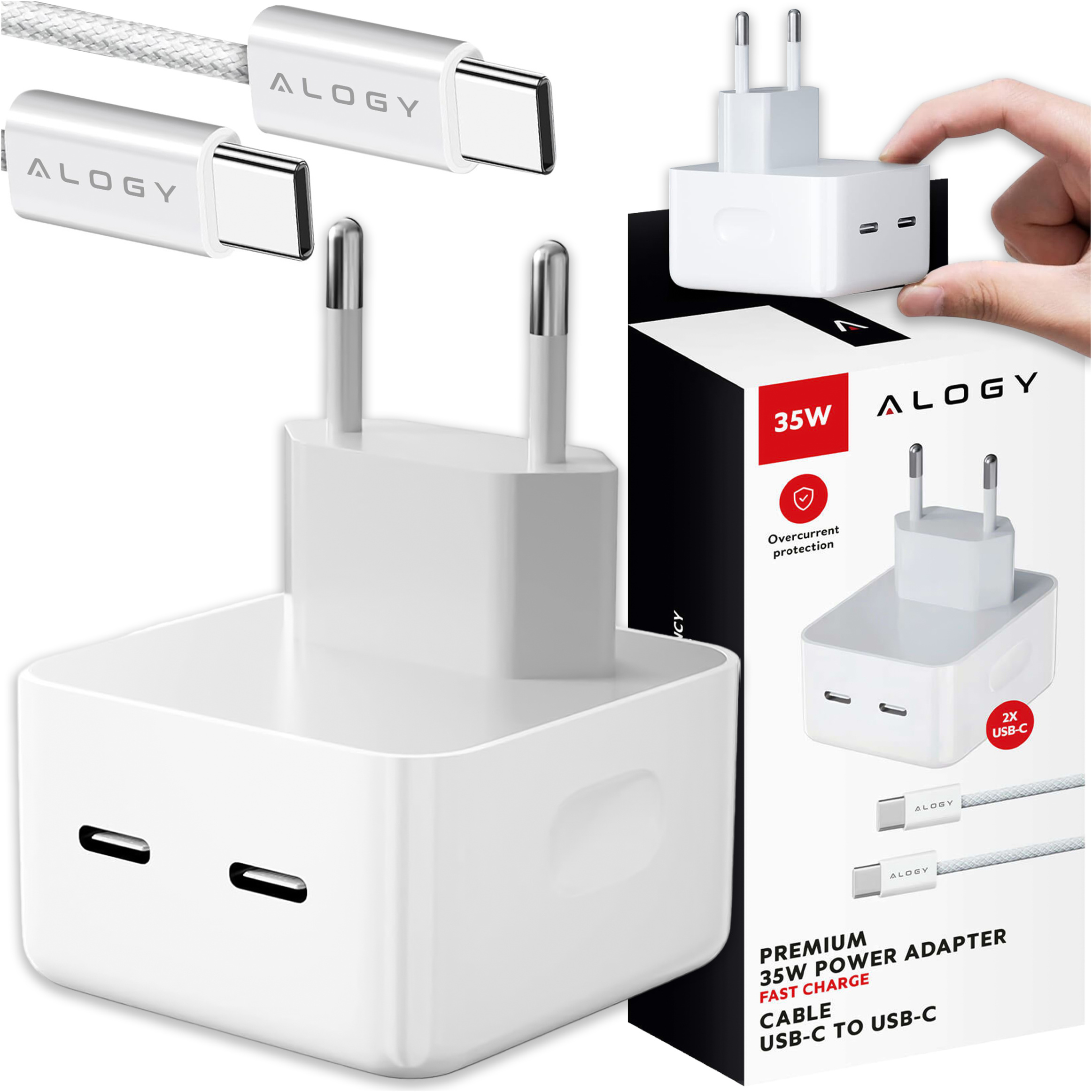 Schnelles 35-W-Wandladegerät 2x USB-C USB Typ C PD für iPhone Typ-C-Kabel 1 m Alogy White x 1