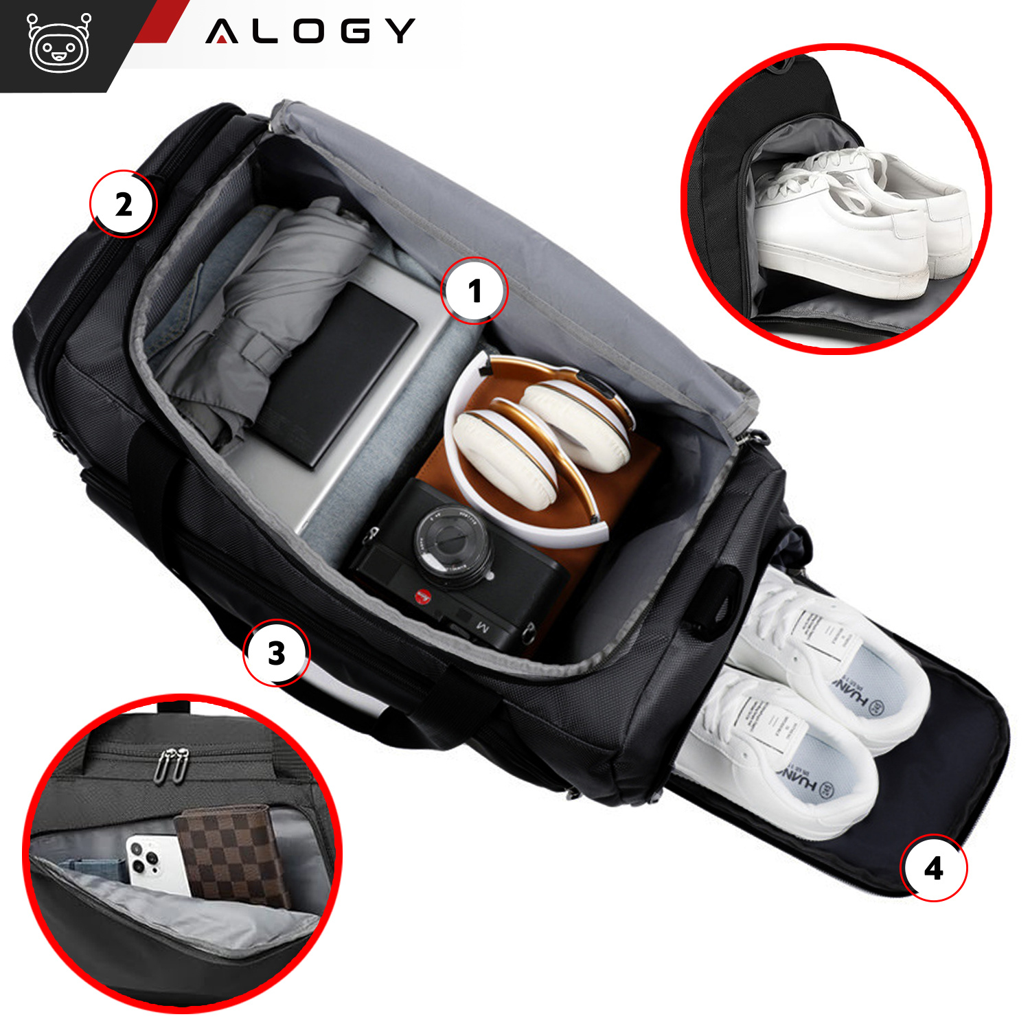 Schultertrainings-Sporttasche für Herren und Damen für das Fitnessstudio, Reisetasche aus Thermostoff, Fassungsvermögen 40 l, Alogy Black x 1