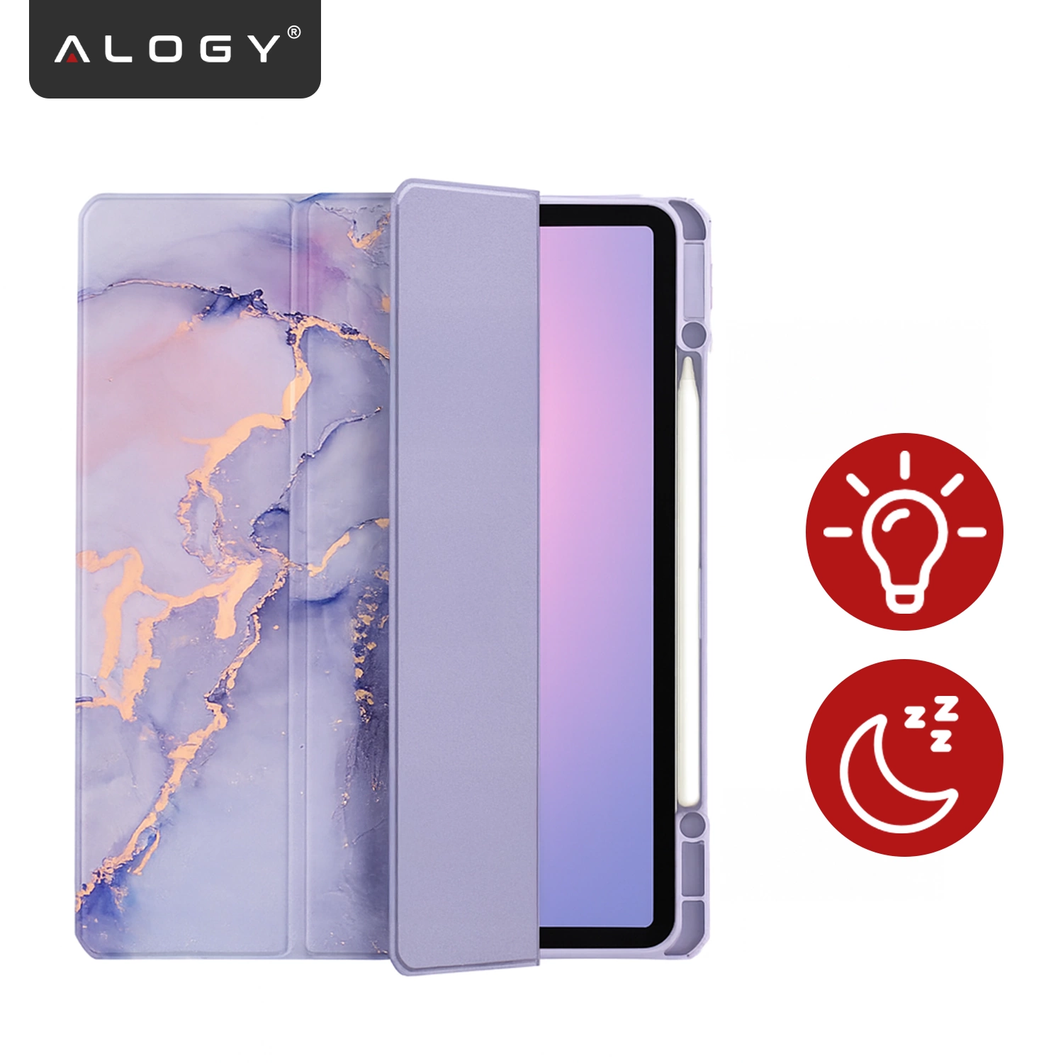 Schutzhülle für Apple iPad 10,9" (10. Generation, 2022) / iPad 11" A16 (11. Generation, 2025) Hybrid mit Stifthalter, faltbare Hülle mit 2-in-1-Ständerfunktion, Alogy HybridBook™ Hülle – Marmorviolett x 1