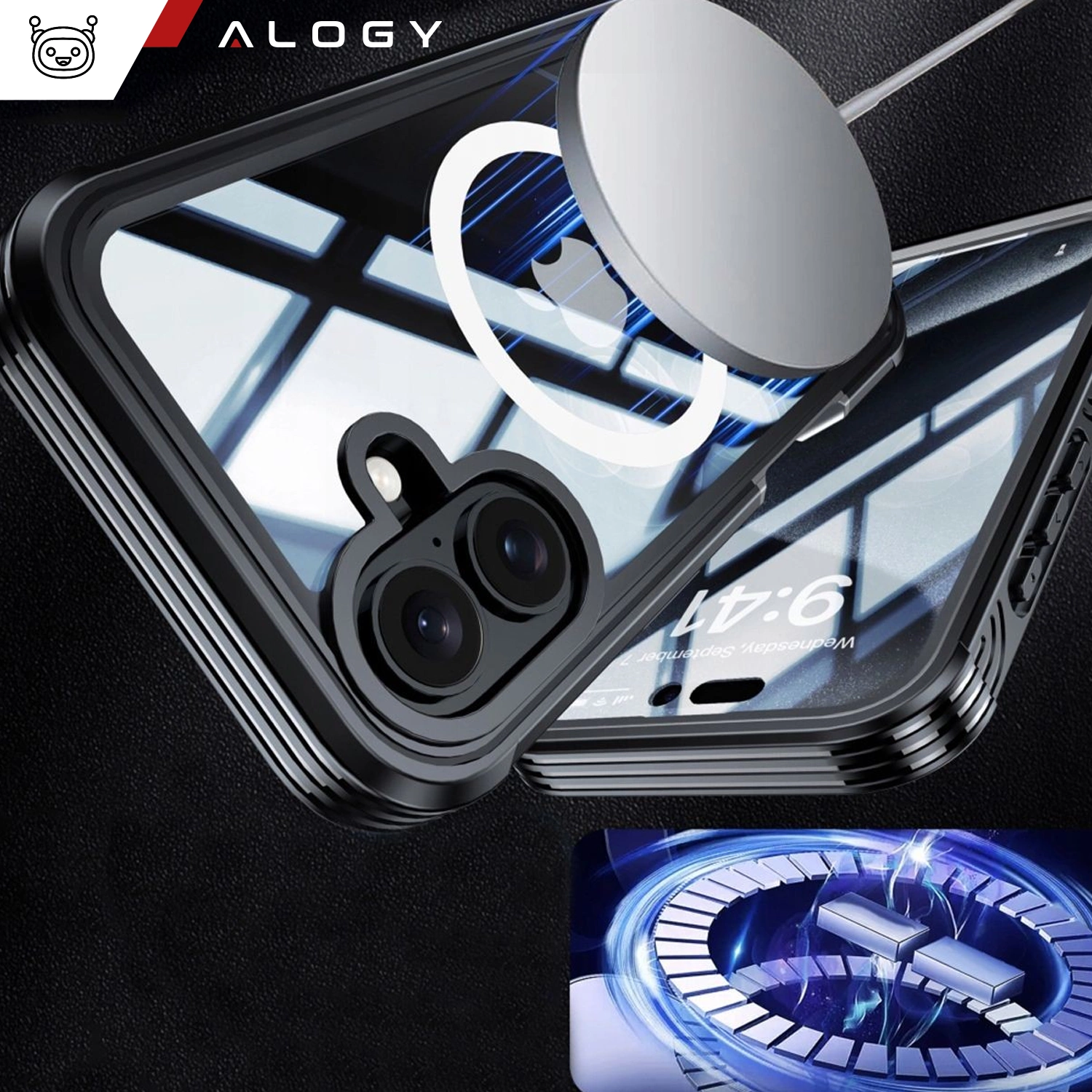 Schutzhülle für Apple iPhone 16 Alogy Shield360 MagCase™️ mit MagSafe-Funktion, inklusive Display- und Kameraschutz, Schwarz x 1