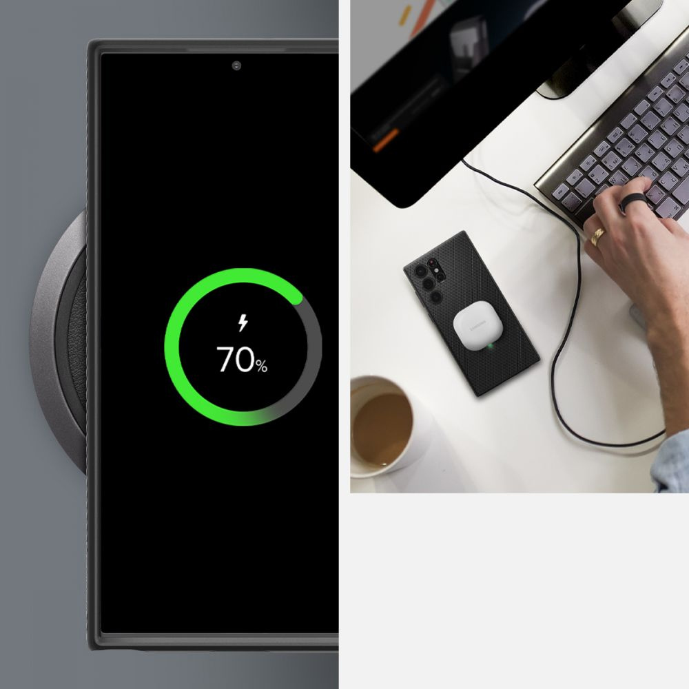 Die Handyhülle der Spigen Liquid Air-Serie ist ein Produkt, das speziell für das Samsung Galaxy S22 Ultra entwickelt wurde. Es wurde aus hochwertigem flexiblem Polyurethan (TPU) hergestellt, das sich dank seiner Eigenschaften an das Gerät anpasst, die Möglichkeit des Verrutschens minimiert und seine Größe nicht wesentlich erhöht. Die Liquid Air- Hülle schützt Ihr Telefon vor Schäden durch einen Sturz aus durchschnittlicher Höhe, indem es die Kraft des Aufpralls absorbiert.