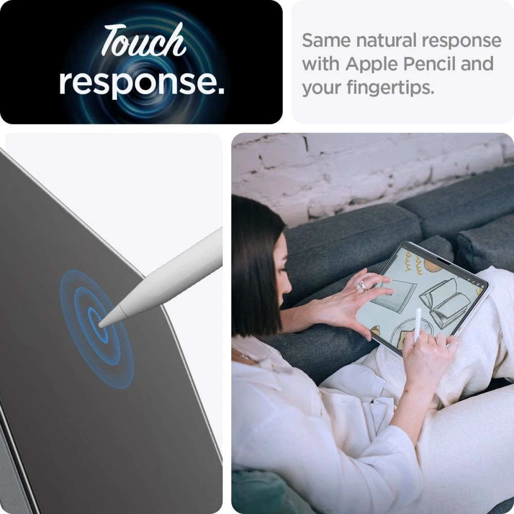 Spigen Paper Touch ist eine innovative iPad-Displayabdeckung, die ein einzigartiges Benutzererlebnis bietet. Gehärtetes Glas mit einer Härte von 9H garantiert unübertroffene Haltbarkeit und Displayschutz.